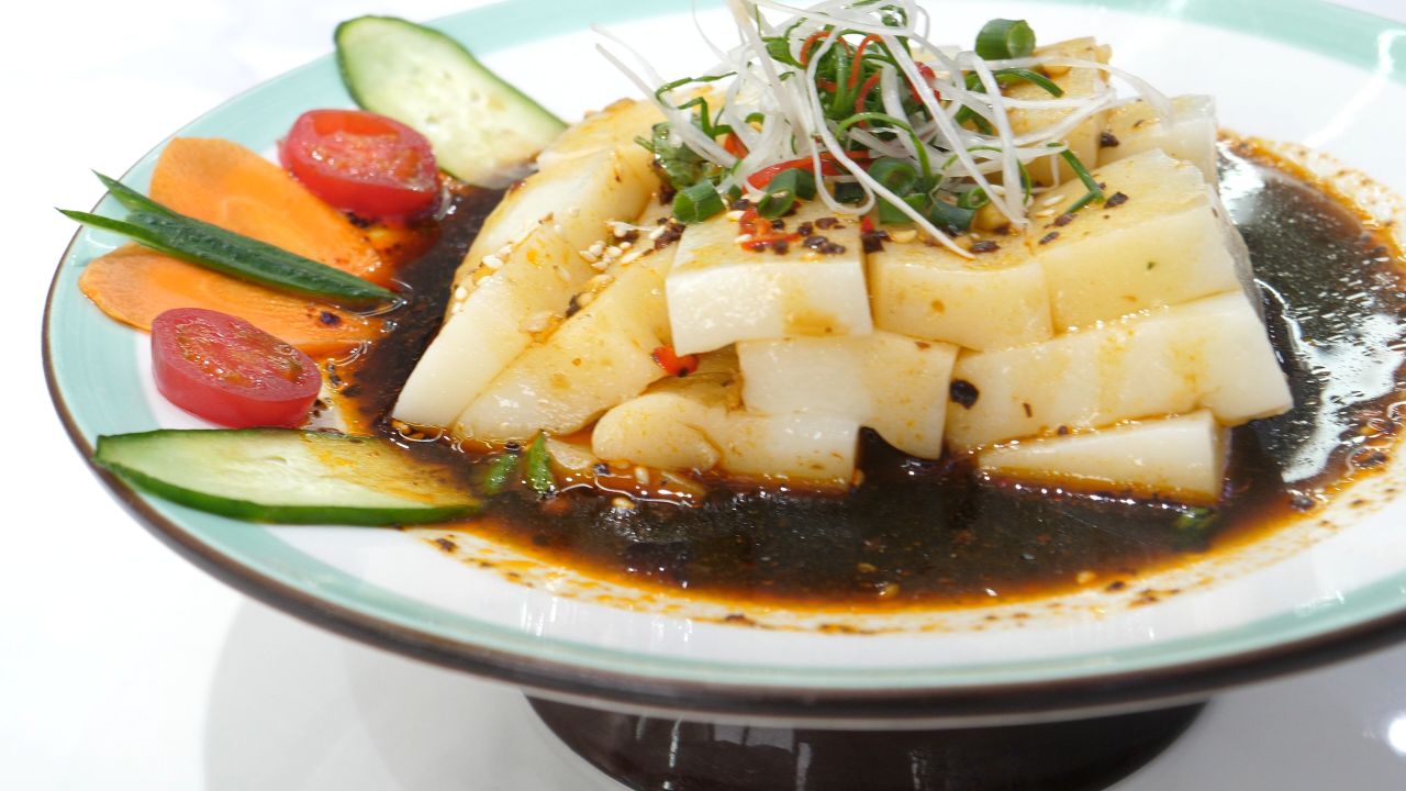 吃攪團(tuán),講究蘸汁。油潑辣子、蒜泥、香醋、醬油調(diào)成的酸辣汁,是最經(jīng)典的伴侶。舀一勺顫巍巍、溫潤如玉的攪團(tuán)入碗,澆上紅亮亮的蘸汁,入口,攪團(tuán)是那般柔順光滑,幾乎不用咀嚼,便溫柔地滑入喉中,只留下玉米溫暖的甜香與豆類樸實(shí)的芬芳,酸辣鮮香的汁水洶涌而上,完成味覺上最酣暢的圍剿。它極飽人,一碗下肚,半日不饑。它是一碗凝固的時(shí)光,吃下去,便是與這片土地上,千百年來沉默而堅(jiān)韌的日常,達(dá)成了和解。