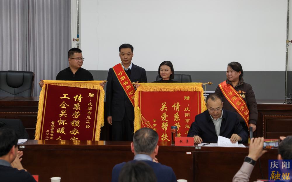 勞動代表向市總工會贈送錦旗。