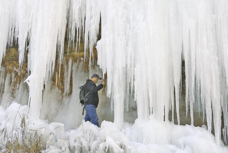 隆冬時(shí)節(jié),西峰區(qū)肖金鎮(zhèn)灣鐮溝的如意峽迎來(lái)冰雪季,峽谷兩側(cè)巖壁上冰瀑群連片成景,或垂如銀練、或凝如玉柱,造型多樣、晶瑩剔透,在陽(yáng)光照耀下折射出璀璨的光芒,成為游客賞景打卡的好去處。慶陽(yáng)融媒記者 盤(pán)小美 攝