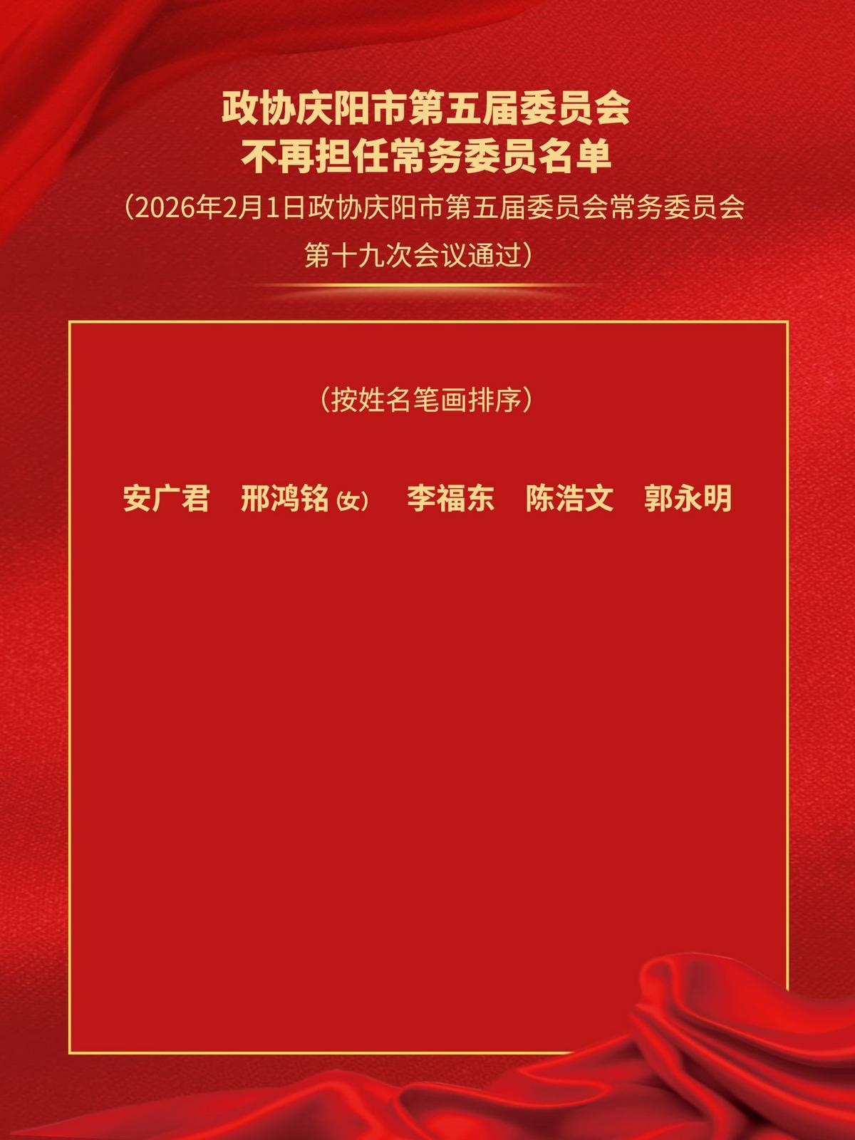 政協(xié)慶陽市第五屆委員會不再擔任常務委員名單