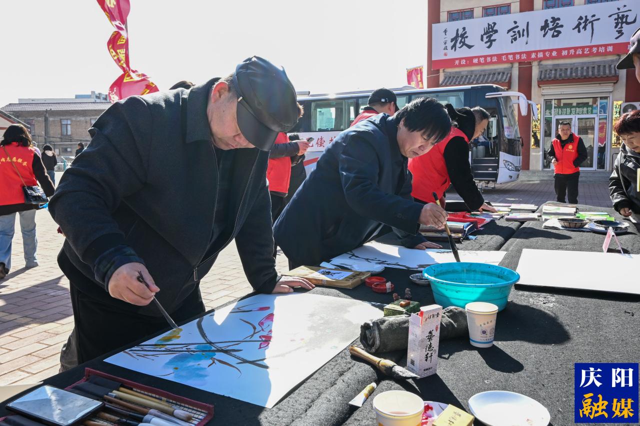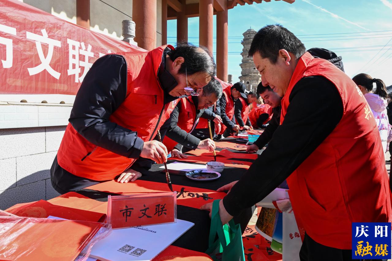 活動(dòng)在歡快的文藝演出中展開(kāi),豐富多彩的綜藝節(jié)目為現(xiàn)場(chǎng)增添了濃厚的節(jié)日氛圍?;顒?dòng)現(xiàn)場(chǎng)氣氛熱烈,文化、科技、衛(wèi)生、法律等多項(xiàng)服務(wù)同步開(kāi)展。文藝工作者獻(xiàn)上了精彩的綜藝節(jié)目,書(shū)畫(huà)家們揮毫潑墨,為群眾書(shū)寫(xiě)春聯(lián)、贈(zèng)送書(shū)畫(huà)。農(nóng)業(yè)專家現(xiàn)場(chǎng)講解種植養(yǎng)殖技術(shù),開(kāi)展“數(shù)字賦能 智算興果”等現(xiàn)代化農(nóng)業(yè)宣傳;醫(yī)療人員設(shè)立義診臺(tái),宣傳流行病防治、養(yǎng)生保健知識(shí);法律工作者則圍繞群眾關(guān)心的權(quán)益保護(hù)、反詐防騙等內(nèi)容進(jìn)行了耐心解答。此外,現(xiàn)場(chǎng)還開(kāi)展了圖書(shū)捐贈(zèng)、科普體驗(yàn)、政策宣講等共30項(xiàng)惠民服務(wù)。
