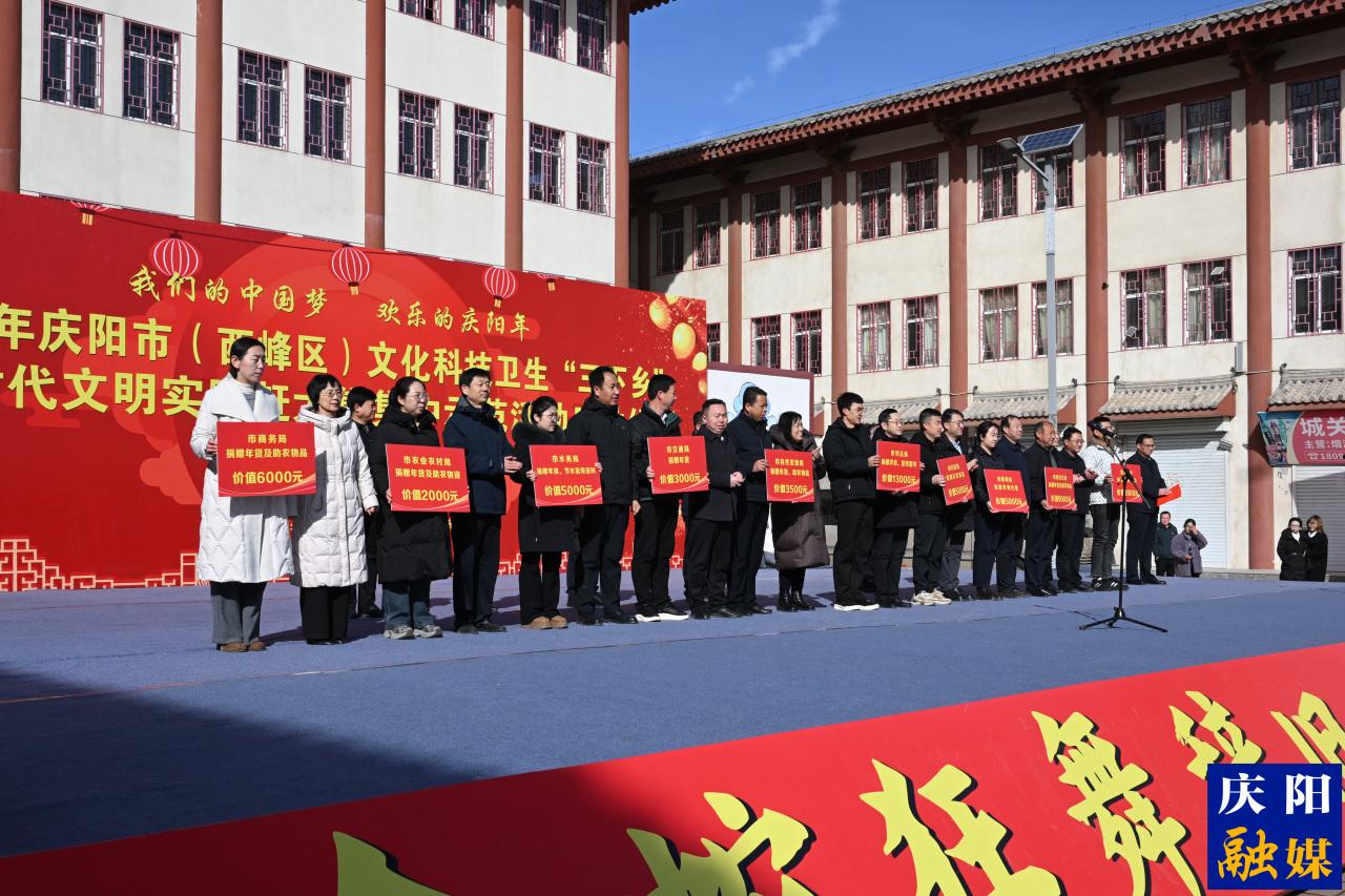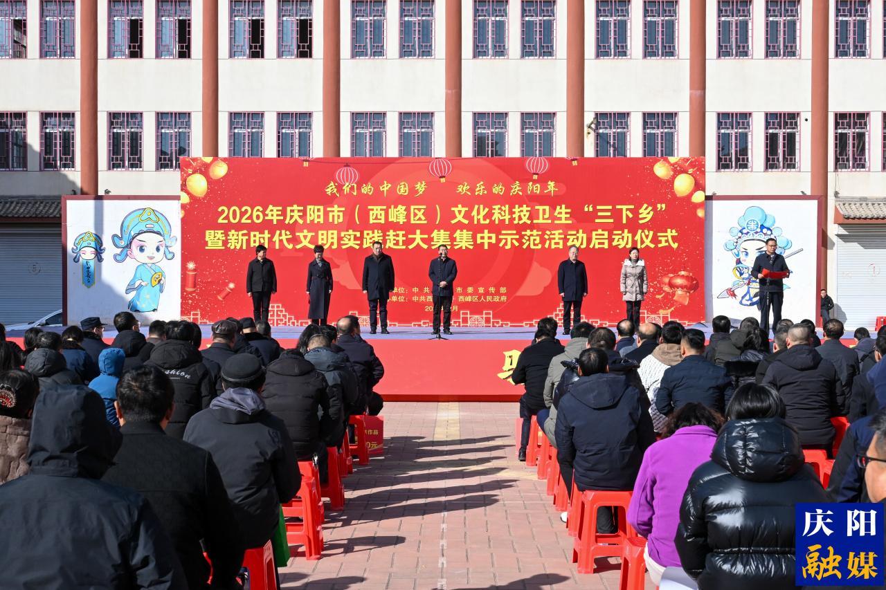 春意漸濃,年味日盛。2月8日,“我們的中國(guó)夢(mèng) 歡樂(lè)的慶陽(yáng)年”2026年慶陽(yáng)市(西峰區(qū))文化科技衛(wèi)生“三下鄉(xiāng)”暨新時(shí)代文明實(shí)踐趕大集集中示范活動(dòng)在西峰區(qū)肖金鎮(zhèn)文化廣場(chǎng)舉行?;顒?dòng)由慶陽(yáng)市委、市政府主辦,慶陽(yáng)市委宣傳部、西峰區(qū)委、區(qū)政府承辦。市、區(qū)相關(guān)部門(mén)負(fù)責(zé)人、志愿工作者,以及肖金鎮(zhèn)干部職工、農(nóng)民群眾共500余人齊聚一堂,共同迎來(lái)了這場(chǎng)情系民生的文化盛宴。
