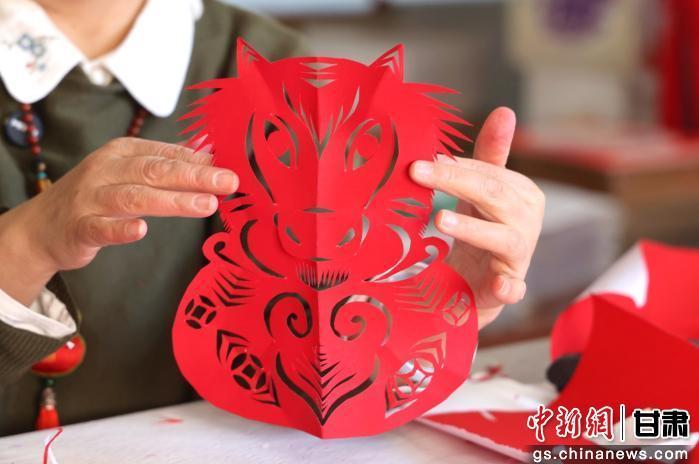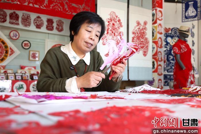 圖為國(guó)家級(jí)非物質(zhì)文化遺產(chǎn)慶陽(yáng)剪紙代表性傳承人馬路創(chuàng)作新春主題窗花。盤(pán)小美 攝