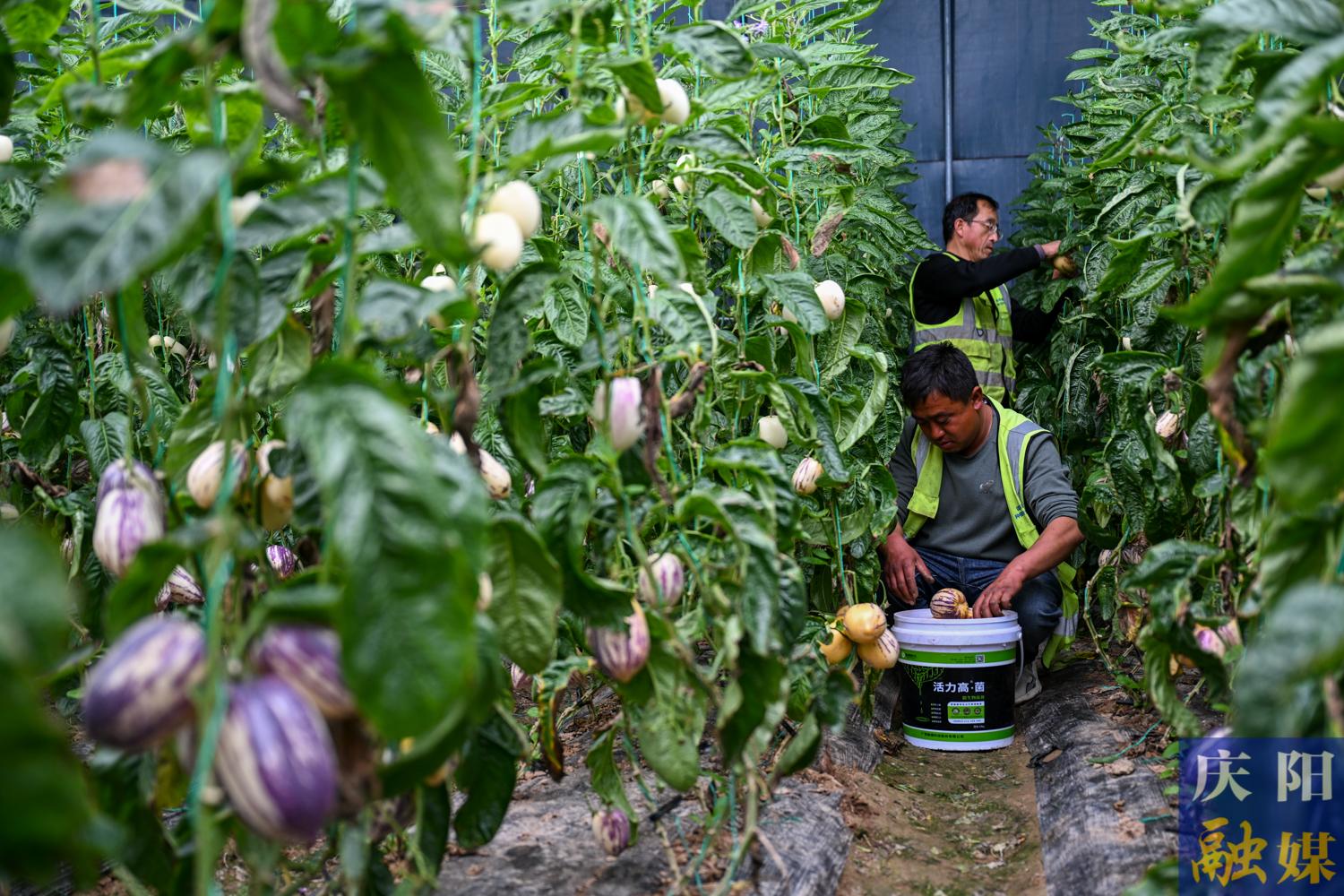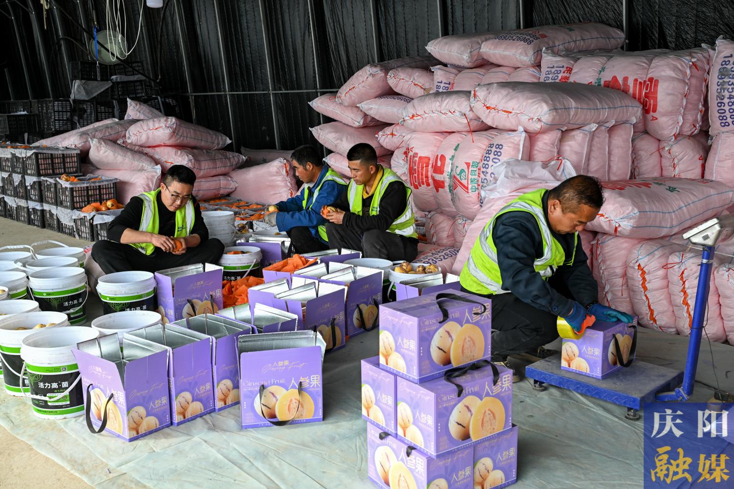 工人在大棚里忙著采摘人參果