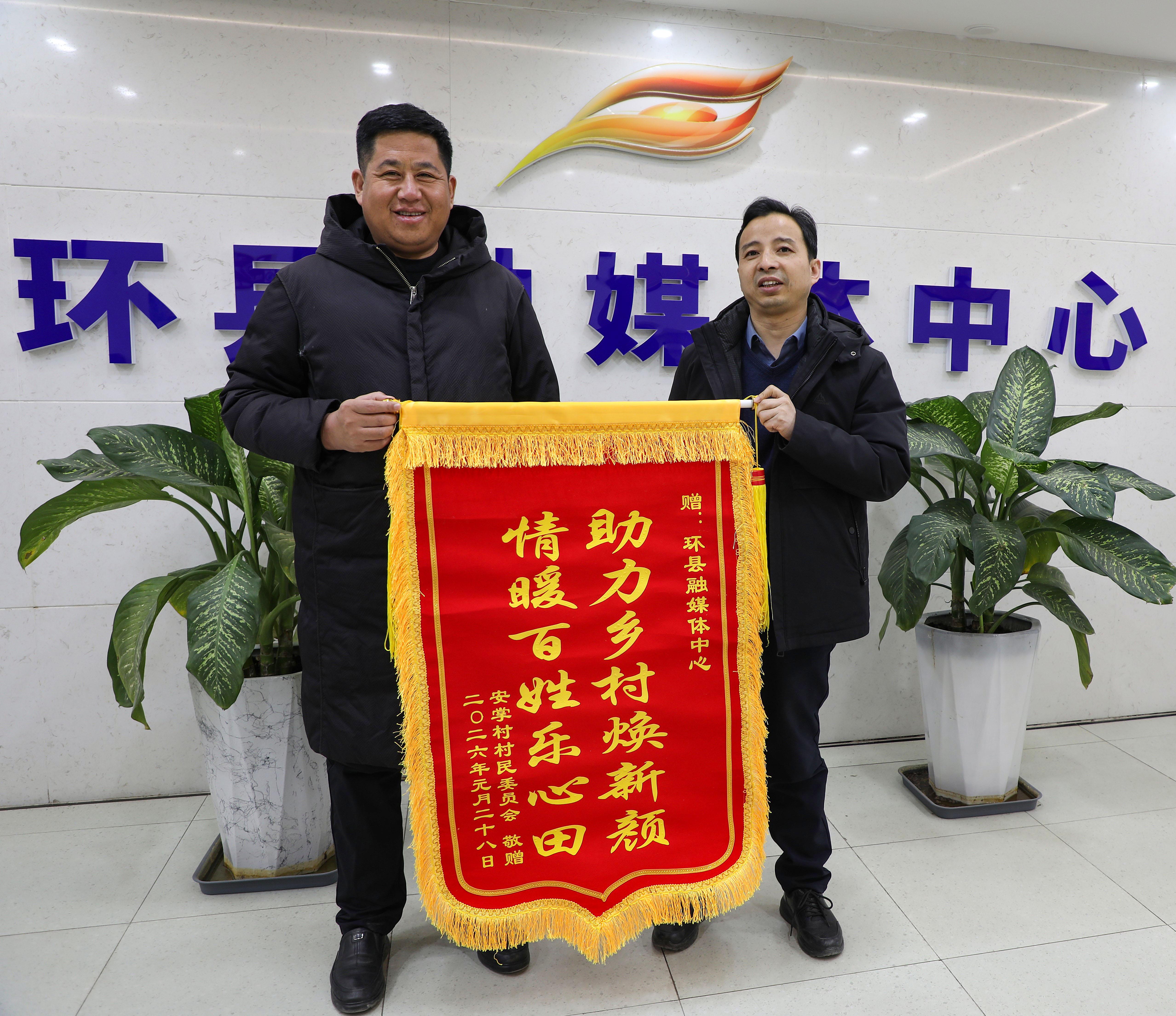 年關(guān)將近,暖意融融。2月13日,環(huán)縣車道鎮(zhèn)安掌村黨支部書記張成珠專程來到環(huán)縣融媒體中心,將一面印有“情系百姓樂心田 助力鄉(xiāng)村煥新顏”的錦旗送到中心負(fù)責(zé)人手中,以最質(zhì)樸的方式,感謝融媒體中心一年來對安掌村各項(xiàng)工作的宣傳報道與輿論支持。