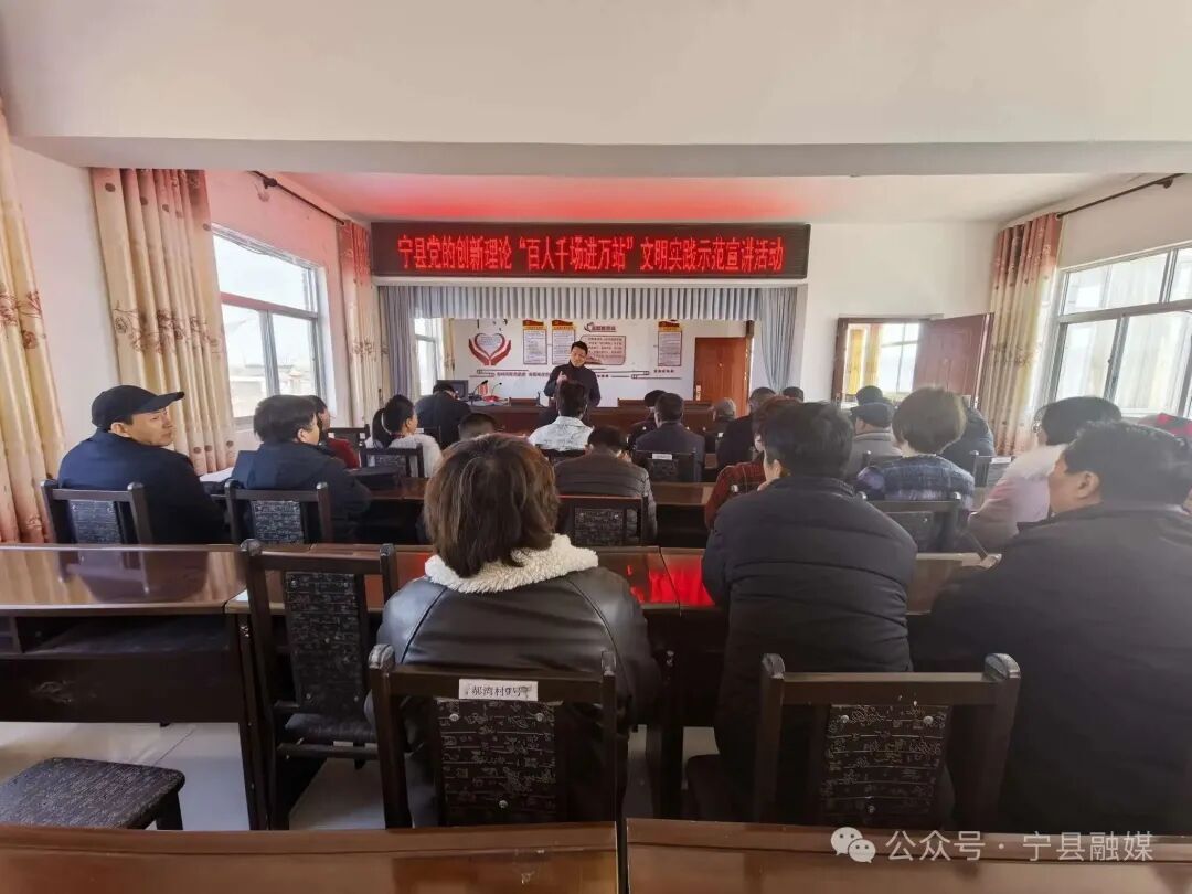 2月11日,寧縣黨的創(chuàng)新理論“百人千場(chǎng)進(jìn)萬(wàn)站”文明實(shí)踐示范宣講活動(dòng)在盤克鎮(zhèn)郝灣村舉行。
