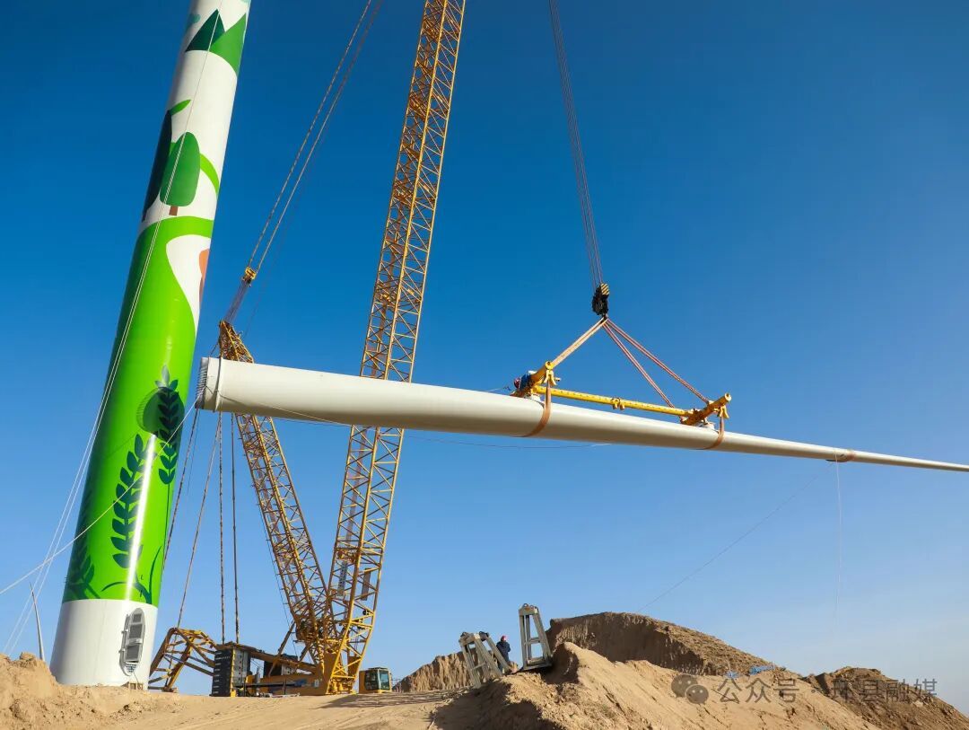 項(xiàng)目建設(shè)進(jìn)度蹄疾步穩(wěn),核心數(shù)據(jù)清晰亮眼。華能隴東能源基地E2項(xiàng)目總裝機(jī)規(guī)模480兆瓦,其中風(fēng)電裝機(jī)372兆瓦、光伏裝機(jī)108兆瓦,項(xiàng)目覆蓋羅山川鄉(xiāng)、洪德鎮(zhèn)、虎洞鎮(zhèn)16個(gè)自然村,是支撐隴東特高壓工程外送的重要新能源電源點(diǎn)。項(xiàng)目規(guī)劃安裝風(fēng)機(jī)67臺(tái),目前已完成65臺(tái)安裝。單臺(tái)風(fēng)機(jī)安裝工序科學(xué)高效,5節(jié)塔筒組裝安裝耗時(shí)1天,機(jī)艙與輪轂整體裝配完成需1天,3片葉片吊裝固定需1天,全流程施工組織緊湊、銜接順暢。截至目前,項(xiàng)目升壓站、光伏場(chǎng)區(qū)、集電線路等配套設(shè)施已全部完工,整體進(jìn)入收尾攻堅(jiān)階段。
