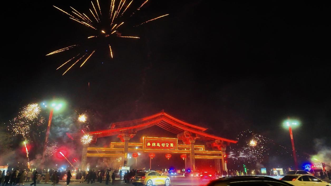 除夕夜海綿運動公園景象。