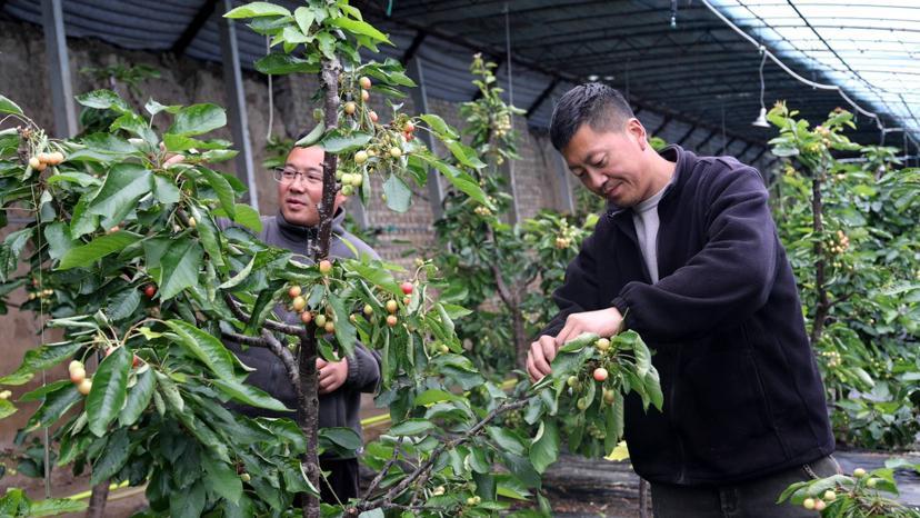 肖金鎮(zhèn)米王村萬(wàn)潤(rùn)園種植養(yǎng)殖農(nóng)民專業(yè)合作社負(fù)責(zé)人米國(guó)華介紹:“今年櫻桃是第三年掛果,每棚產(chǎn)量比去年能多100到200斤,最早的櫻桃今年陽(yáng)歷4月份就可以上市。”