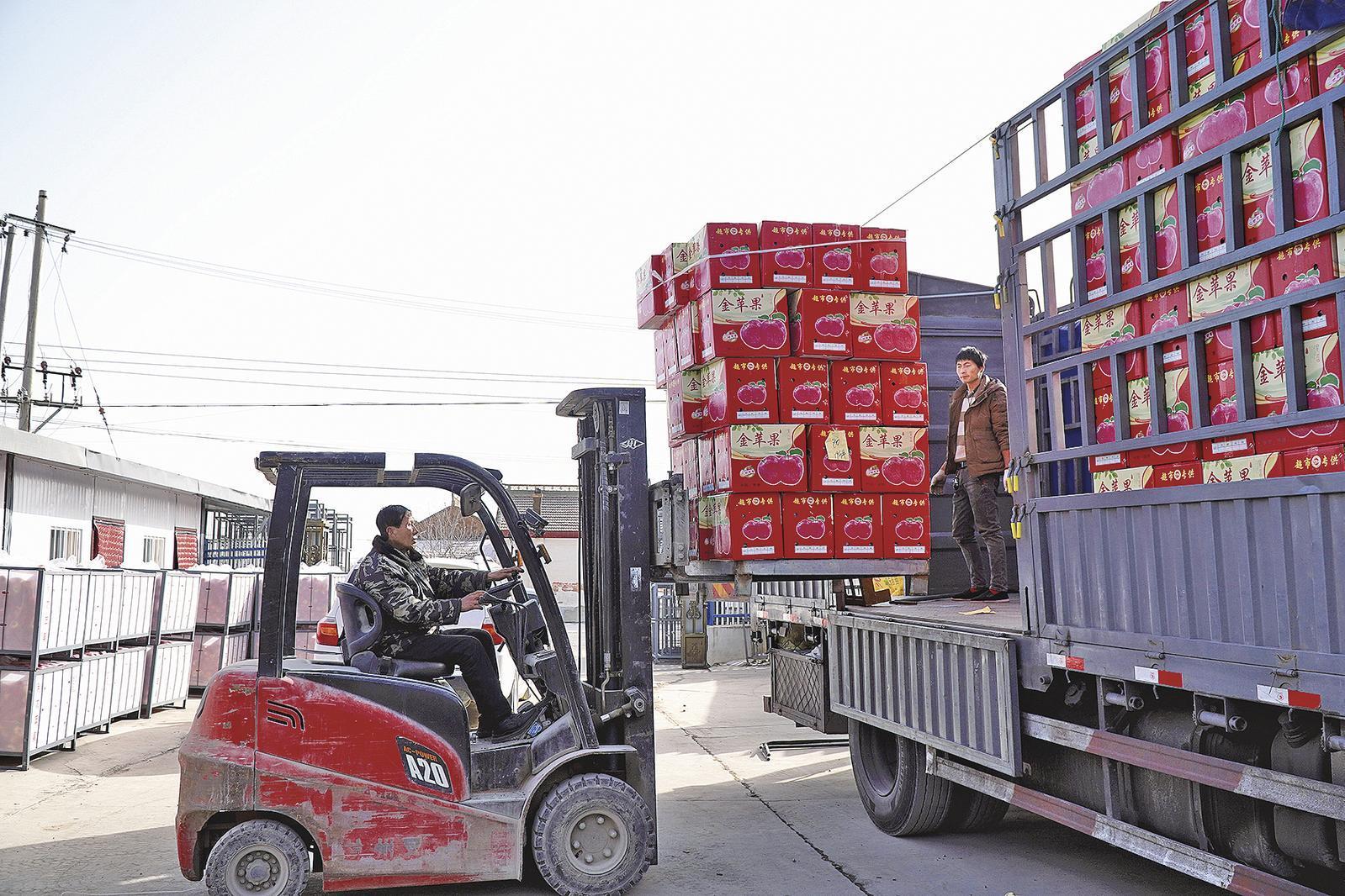 合作社工人將蘋果裝車。慶陽融媒記者 路世玲 攝