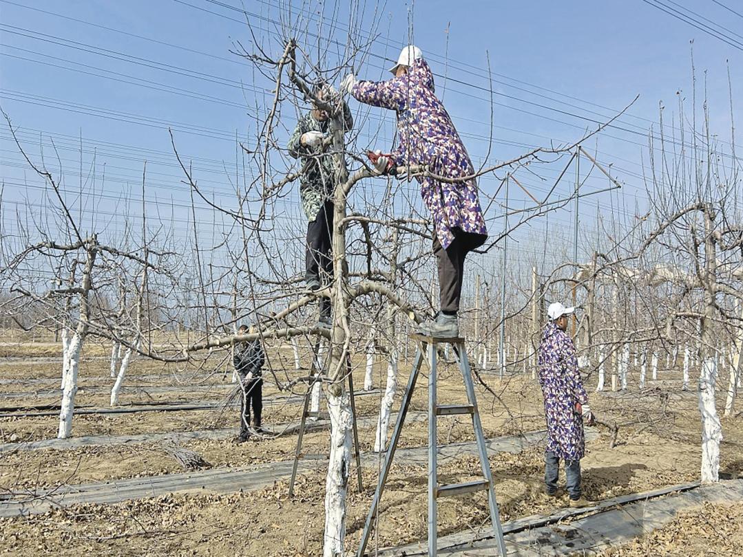 南莊鄉(xiāng)何塬村群眾進行果樹春剪。 慶陽融媒記者 李云 攝