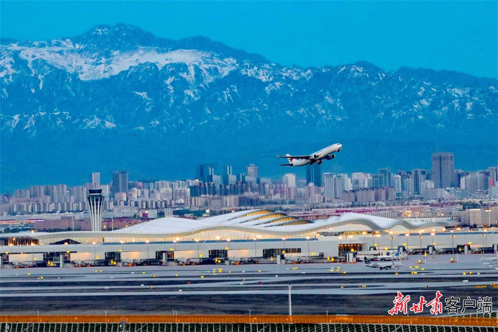一架客機(jī)從烏魯木齊天山國際機(jī)場北航站區(qū)起飛。 蔡增樂