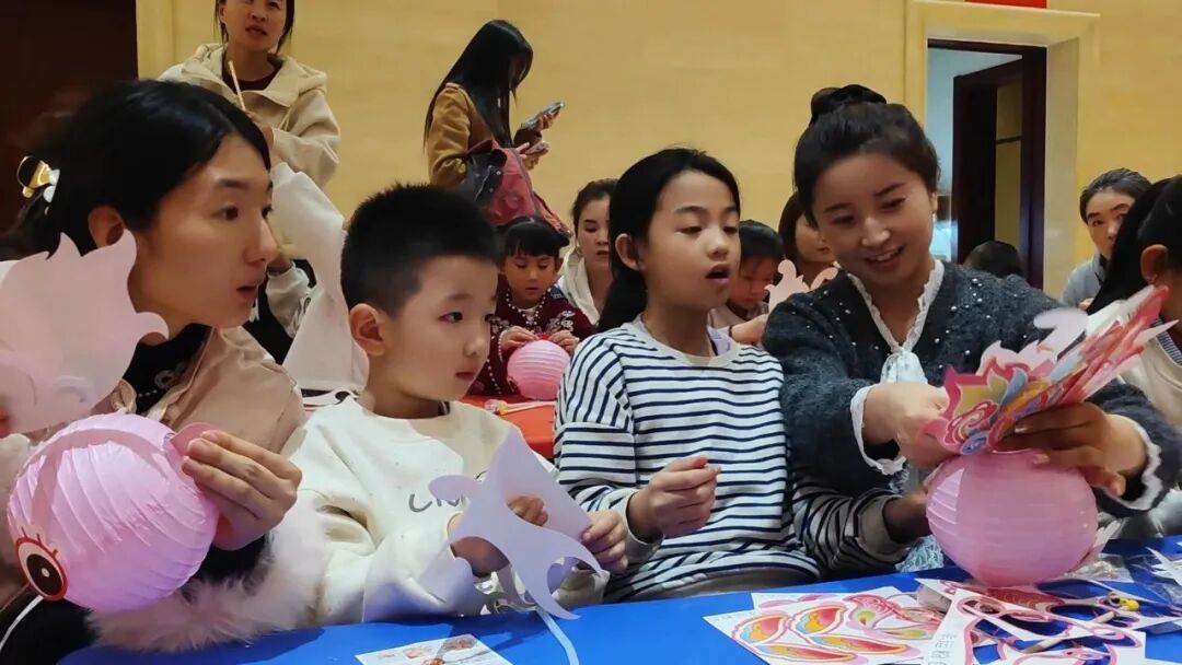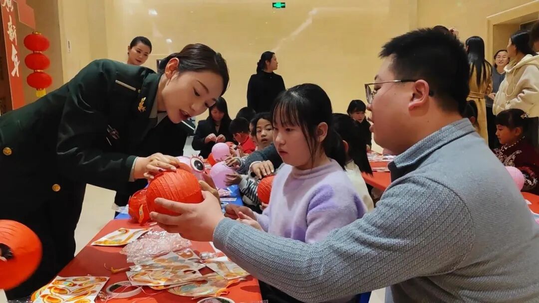 理論的滋養(yǎng),最終化作指尖的創(chuàng)意實踐。工作人員為每位小學生分發(fā)了專屬材料包,本次手工制作的主角,正是寓意吉祥的小金魚燈籠。在工作人員的分步示范與耐心指導下,孩子們在家長的陪伴下忙得不亦樂乎。裁剪、粘貼、組裝,不一會兒,一盞盞造型可愛的小金魚紅燈籠便躍然手中。紅色的魚身映著孩子們燦爛的笑臉,靈動的流蘇隨風輕擺,傳統(tǒng)手工技藝的魅力與紅色文化的深厚底蘊,在親子協(xié)作的歡聲笑語中完美交融。這不僅是一盞燈籠,更是孩子們親手打造的“紅色新春信物”,承載著對美好未來的期許與對革命初心的銘記。