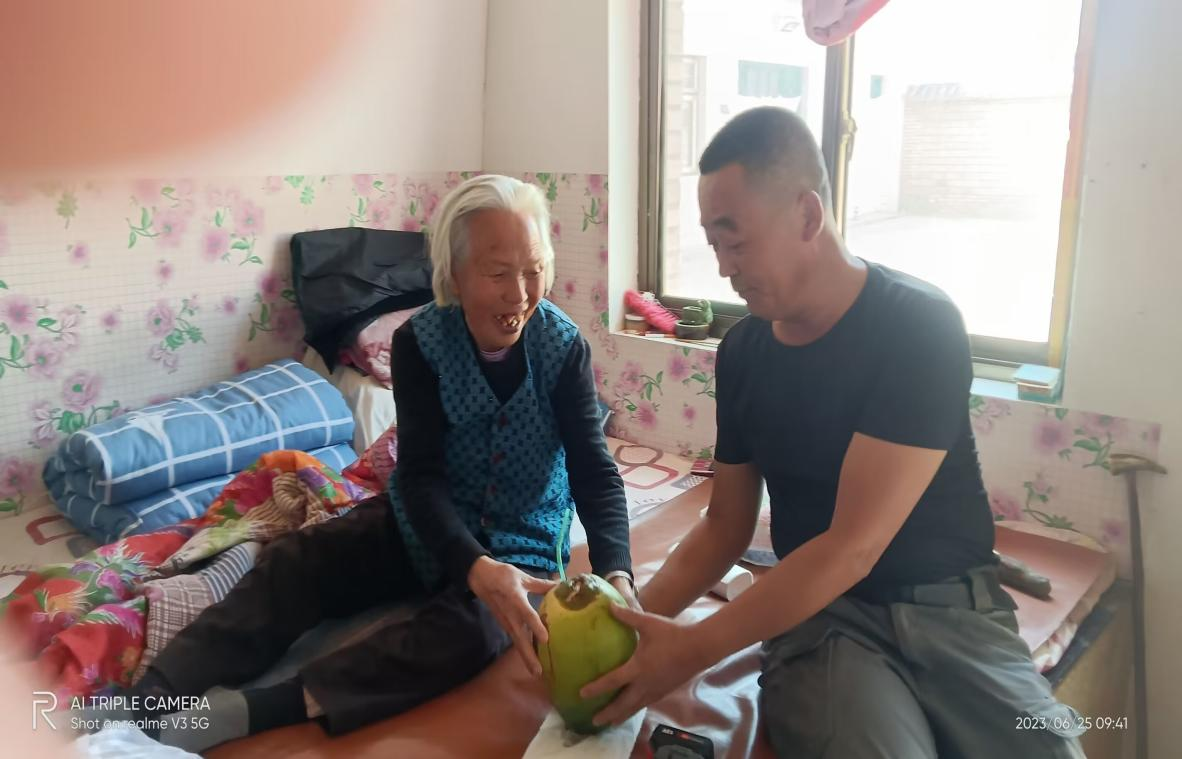 村里的張秀琴老人年事已高,腿腳不便,出門辦事、采購生活用品格外艱難。馮慶東主動扛起這份責(zé)任,隔三岔五就提著米面糧油上門,放下物資就擼起袖子打掃庭院、整理家務(wù),陪老人拉家常、問冷暖,細(xì)致入微地關(guān)心老人的身體狀況和生活需求,用陪伴驅(qū)散獨(dú)居老人的孤單,用細(xì)心化解老人生活中的不便。在曹李川村,像這樣被他時時惦記、悉心照料的老人還有很多,他用不停歇的腳步丈量民情,用實(shí)打?qū)嵉恼嫘臏嘏裥?,成了老人們最信賴的“貼心人”。
