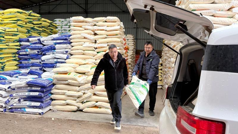 在溫泉鎮(zhèn)米堡村農資配送中心,同樣是一派繁忙的備耕景象。店內貨架上,各類農資擺放得滿滿當當,化肥、農膜等核心物資儲量充足,不時有周邊農戶前來咨詢下單,工作人員一邊介紹產品特性,一邊忙著裝貨配送,現(xiàn)場忙碌有序。