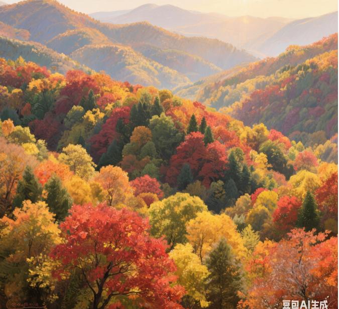 浸染著子午嶺峰巒上的霞光