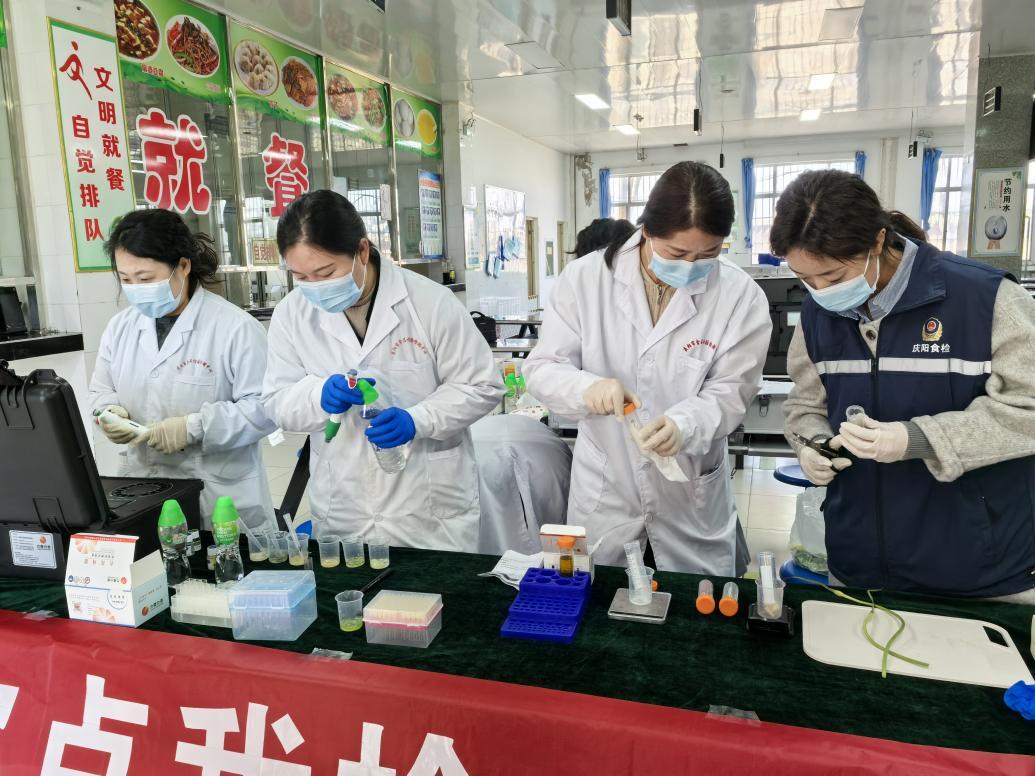 活動現(xiàn)場,學生代表化身“食品安全監(jiān)督員”,在學校食堂后廚“點”出自己關(guān)心的食材品種。檢測人員根據(jù)學生意愿,現(xiàn)場對蔬菜、肉類、粉條、豆腐、菜籽油等十余種常用食材,以及刀具、砧板等加工用具進行了采樣、檢測。重點針對農(nóng)藥殘留、獸藥殘留、吊白塊、酸價、過氧化值、微生物等關(guān)鍵指標開展快速檢測,第一時間向師生公布檢測結(jié)果。