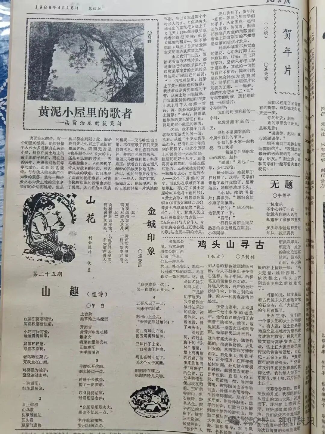 大學時期,學校給每班訂了一份《甘肅日報》,幾乎成了我的專屬。學校有專門的報刊閱覽室,報紙更加豐富,除過黨報,還有多種專業(yè)報紙。畢業(yè)參加工作以后,有了工資,還有優(yōu)待知識分子政策,一月大概一塊五毛錢的書報費,我自費訂了好幾種報紙雜志,包括《中國日報》(英文版)和《隴東報》?!吨袊請蟆房床欢嗌伲€是訂了幾年;從那時起,就是《隴東報》幾十年的老讀者,至今從未間斷。雖然自己訂了報紙,但畢竟數(shù)量有限,就每隔幾天,到學校的辦公室,把所有的報紙都翻一遍??葱侣?,主要看各種副刊。