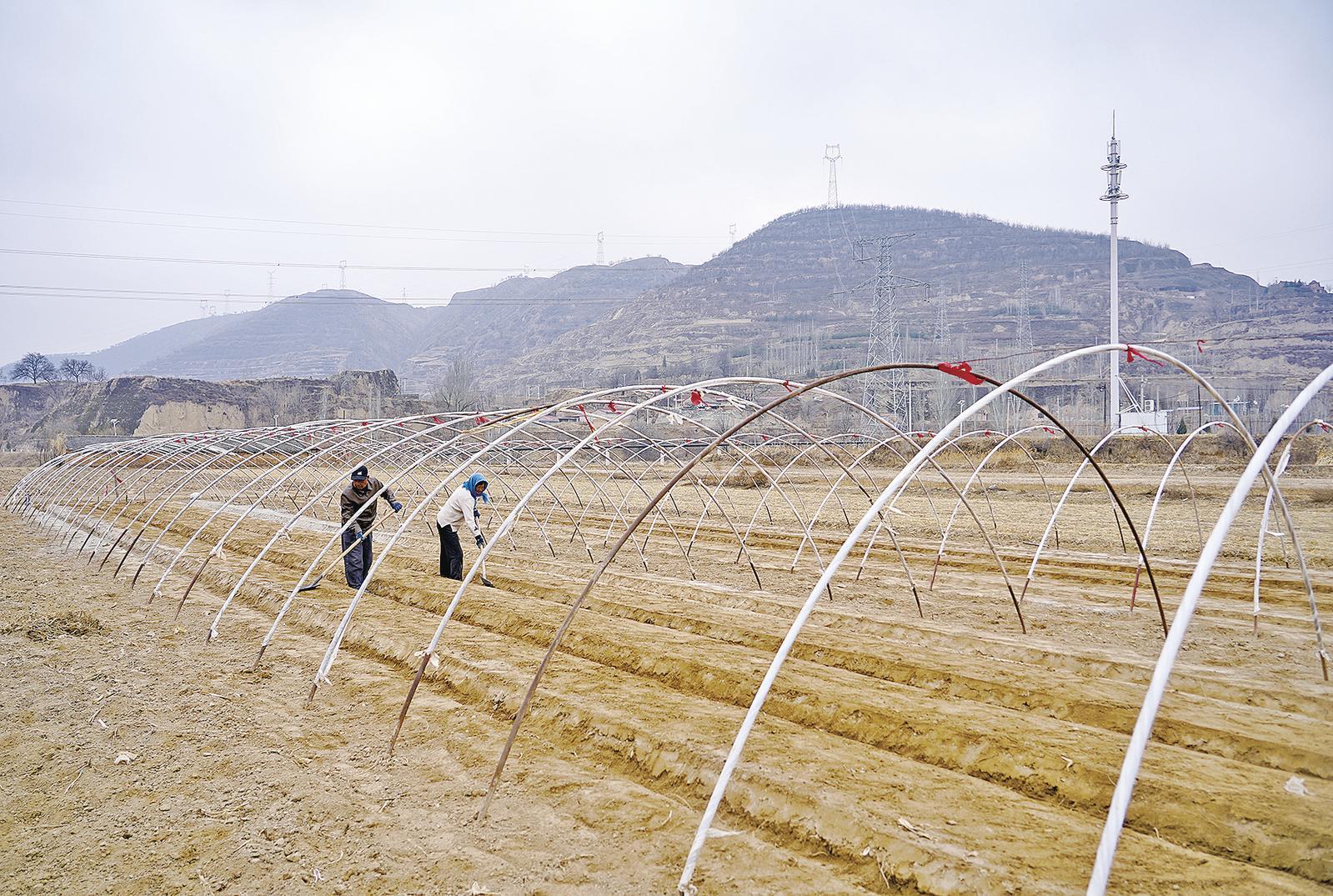 在周灣村,趁著一場春雨帶來的好墑情,村民白萬鋒一家一大早就來到地里,忙著搭建今年的早春拱棚?!拔覀儚娜烨熬烷_始搭棚了,現(xiàn)在搭棚有利于保墑,我今年打算建三個拱棚,等清明節(jié)前后種些甜瓜?!卑兹f鋒說。