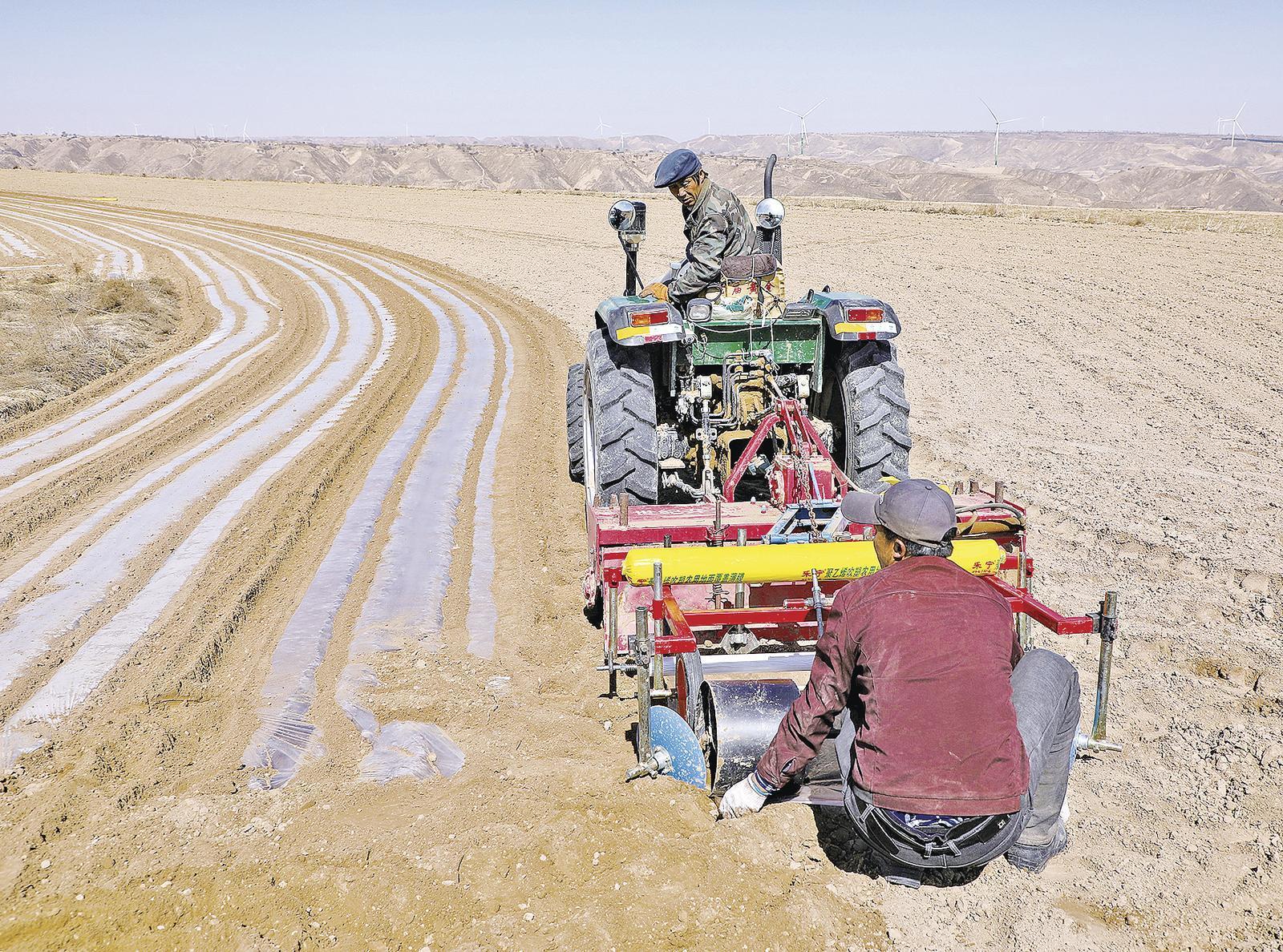 在更北邊的環(huán)縣南湫鄉(xiāng)岳后渠村,8臺(tái)農(nóng)機(jī)齊上陣,犁地、旋耕、覆膜等工序有序推進(jìn),轉(zhuǎn)瞬之間,耕地便披上銀裝。岳后渠村黨支部書記劉天旭介紹,為了保障村民高效覆膜,村里提前調(diào)集農(nóng)機(jī)統(tǒng)一調(diào)度,確保覆膜工作集中推進(jìn)。“去年冬季已完成覆膜約400畝,今年春季計(jì)劃再覆膜900畝左右?!?/p>