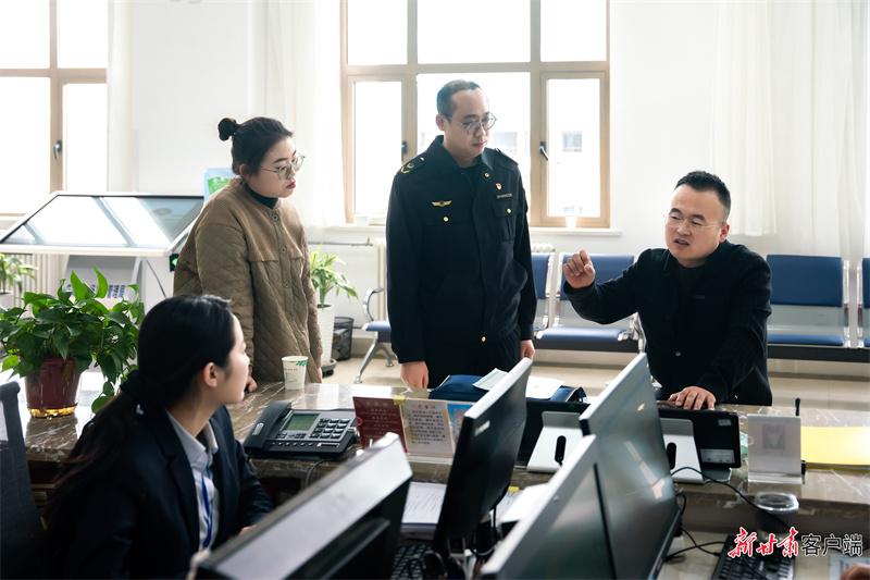 慶陽(yáng)市政務(wù)服務(wù)中心、慶陽(yáng)市市場(chǎng)監(jiān)督管理局工作人員為群眾解答開(kāi)辦企業(yè)問(wèn)題。