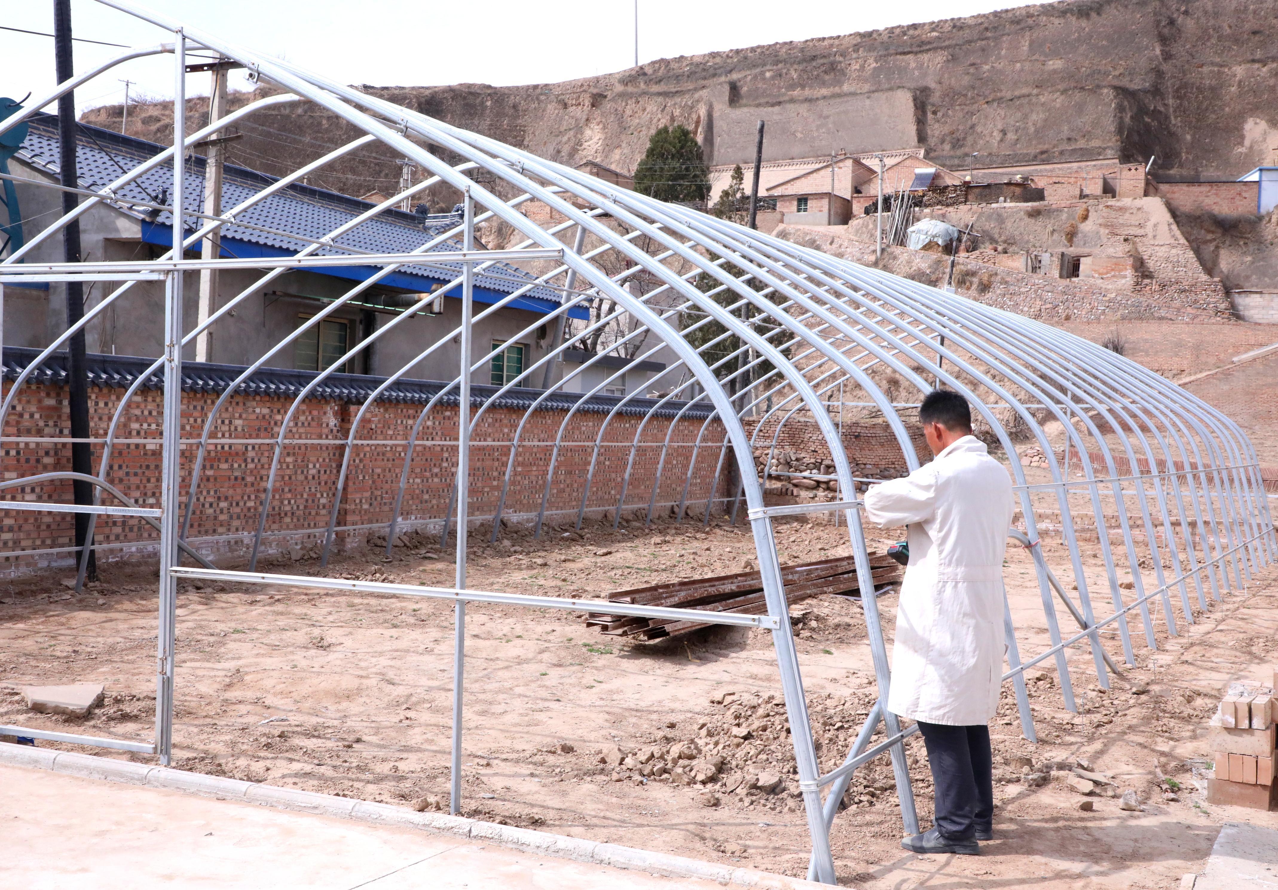 在高廟灣村村民杜學文家的院子里,一座占地160平方米的拱棚已全部搭建完成,滴灌設備一應俱全?!斑@樣能節(jié)水,配著微生物有機肥,還能精準施肥。”杜學文計劃搭建兩個拱棚,“先種一棚甜瓜,清明節(jié)前后再種一棚甜瓜和糯玉米,錯峰上市,價格更好。”