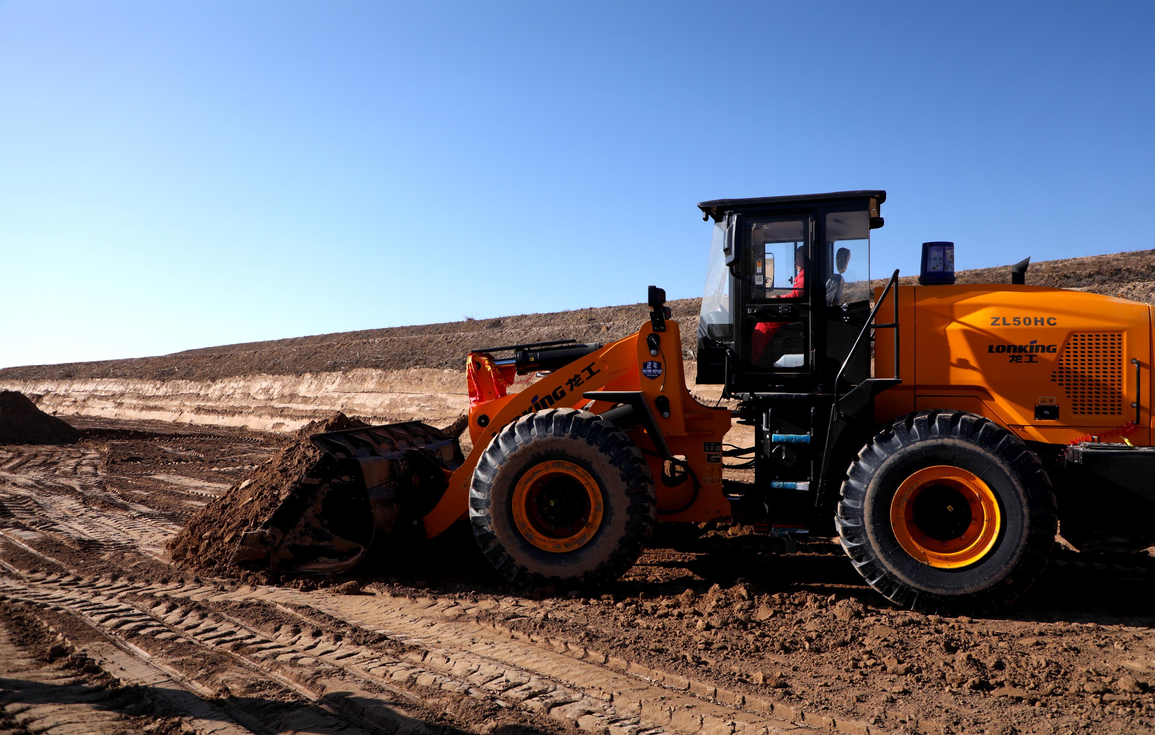 在半個城村高標準農田建設現(xiàn)場,兩臺大型裝載機正在坡地上來回作業(yè)。原本零碎狹小的坡地,正在被改造成平整開闊的良田。