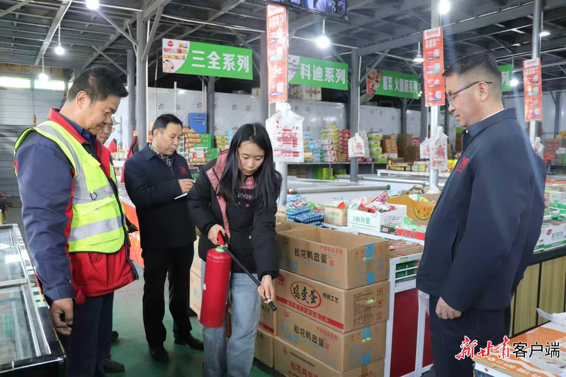 公司管理人員給平?jīng)鍪袠s紅商貿(mào)有限公司人員進行消防培訓。本文圖片均由平?jīng)鲂玛柟怆]東農(nóng)副產(chǎn)品批發(fā)交易市場提供