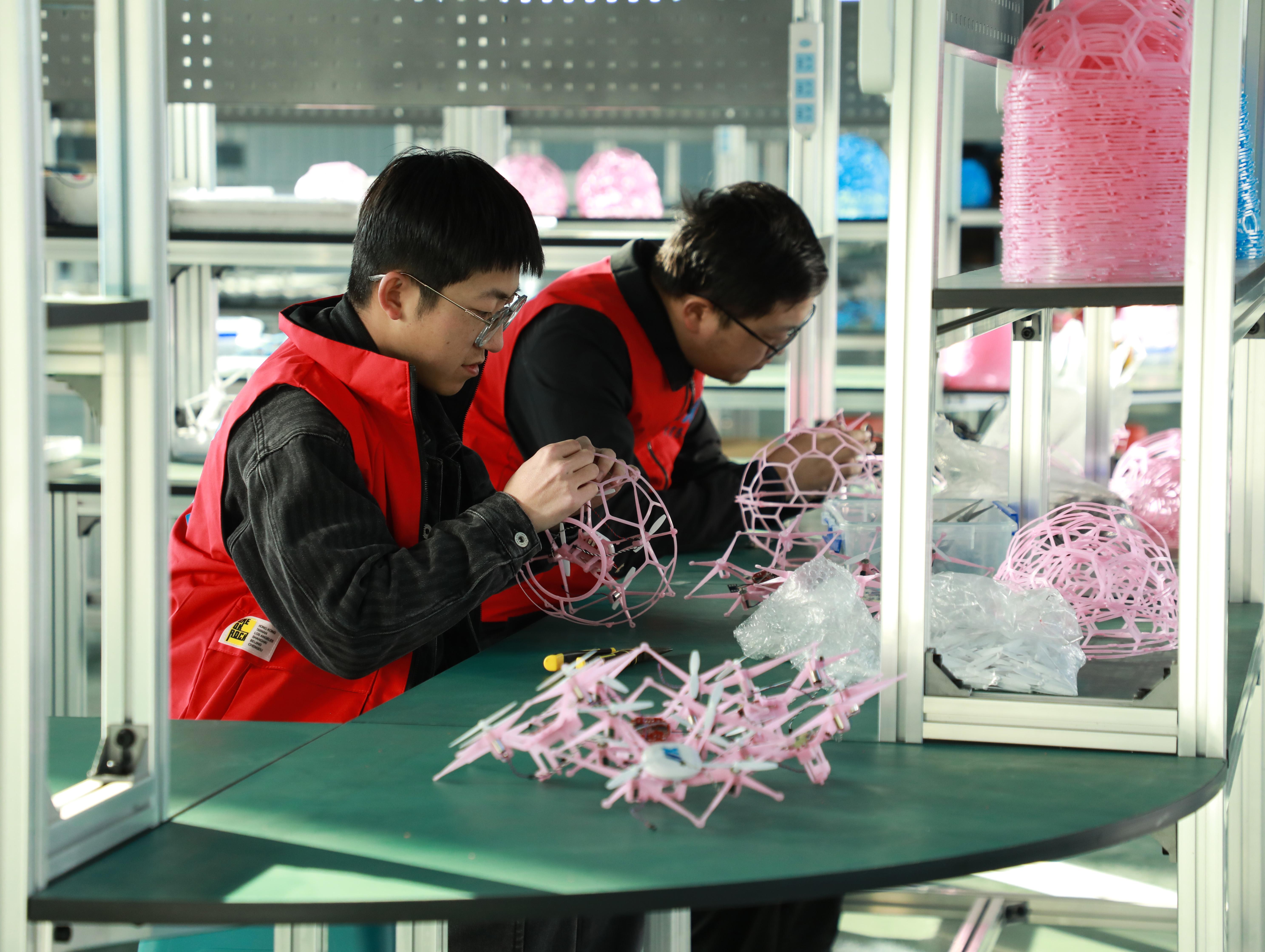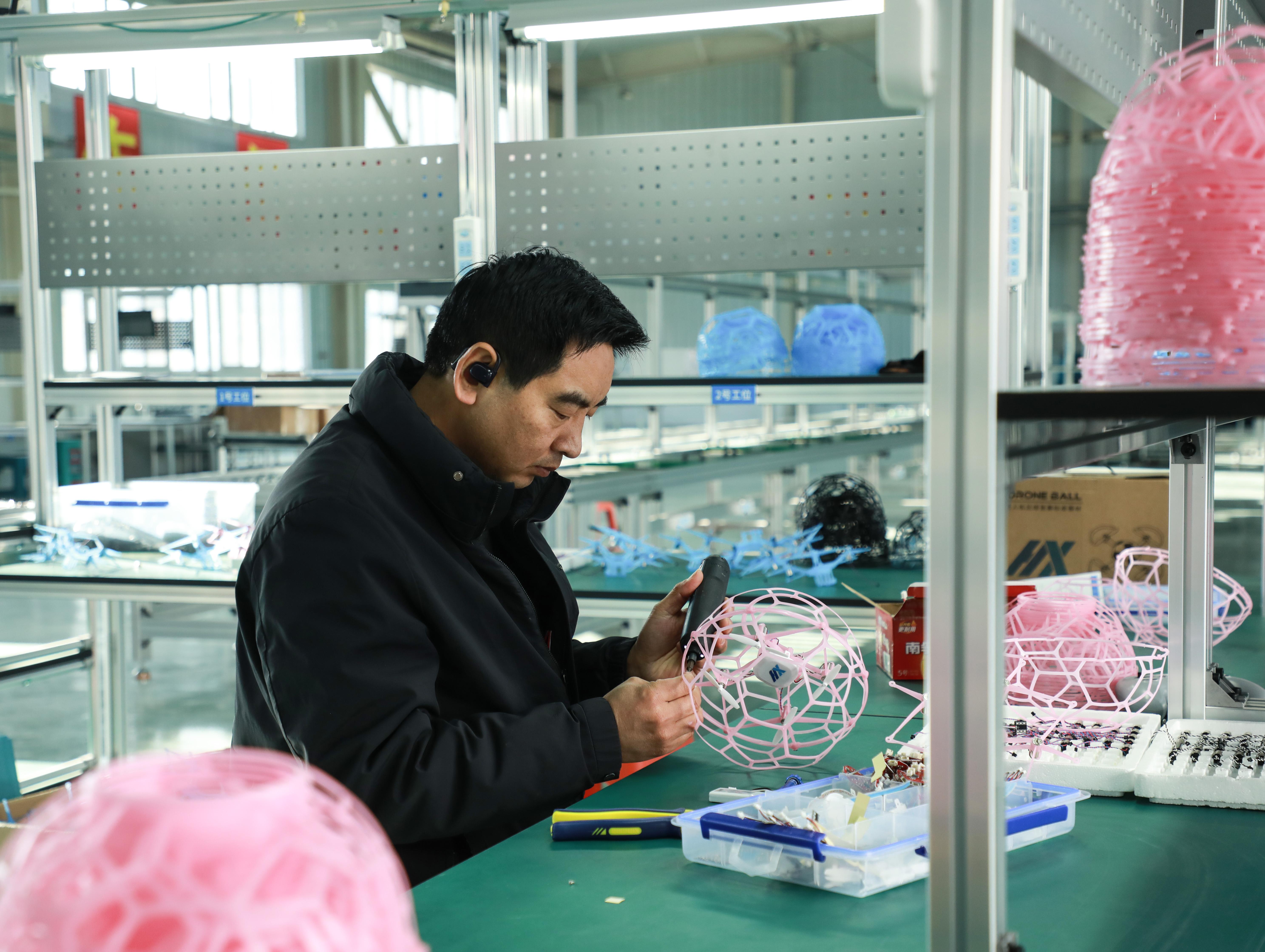 “我主要負(fù)責(zé)無人機足球生產(chǎn),工作輕松易上手,工資由3500元基本工資加提成組成,收入可觀,在家門口就能賺到穩(wěn)定收入,我挺喜歡這份工作的?!痹跓o人機足球生產(chǎn)車間里,工人梁凱翔正熟練地進(jìn)行組裝作業(yè),動作嫻熟流暢。入職半年的他,對這份工作十分滿意。