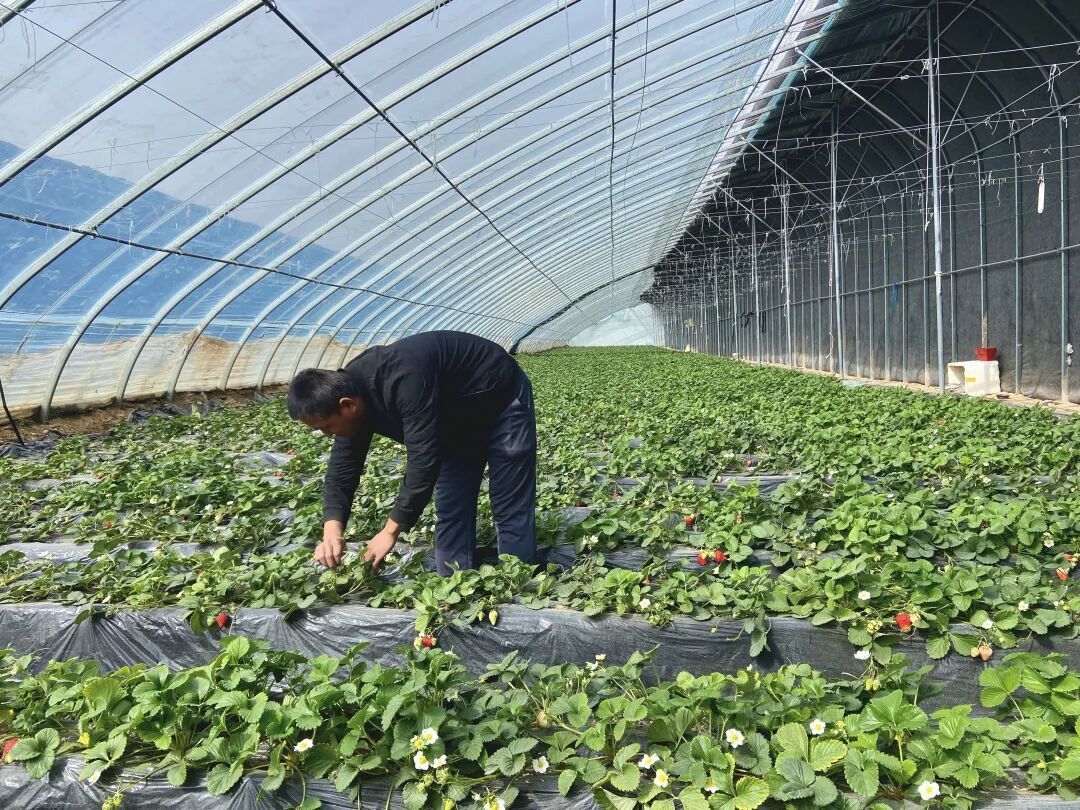 走進(jìn)城關(guān)鎮(zhèn)原鄭村紅綠盛種植專業(yè)合作社,一座座大棚整齊排列,大棚內(nèi),紅彤彤的草莓掛滿枝頭,合作社負(fù)責(zé)人慕永崗掩不住豐收的喜悅,正和工人們一起采摘成熟的“甜蜜果”?!拔覀兊臏厥也葺笈?,主要種植紅顏、奶油等優(yōu)質(zhì)品種。從元旦前后開(kāi)始采摘,一直能持續(xù)到5月份。現(xiàn)在每天都有不少游客過(guò)來(lái)體驗(yàn)采摘,也有商超、水果店長(zhǎng)期訂貨?!蹦接缻徴f(shuō),目前草莓產(chǎn)量穩(wěn)定、銷(xiāo)路暢通,效益一年比一年好,也帶動(dòng)了村里不少群眾在家門(mén)口就業(yè)。