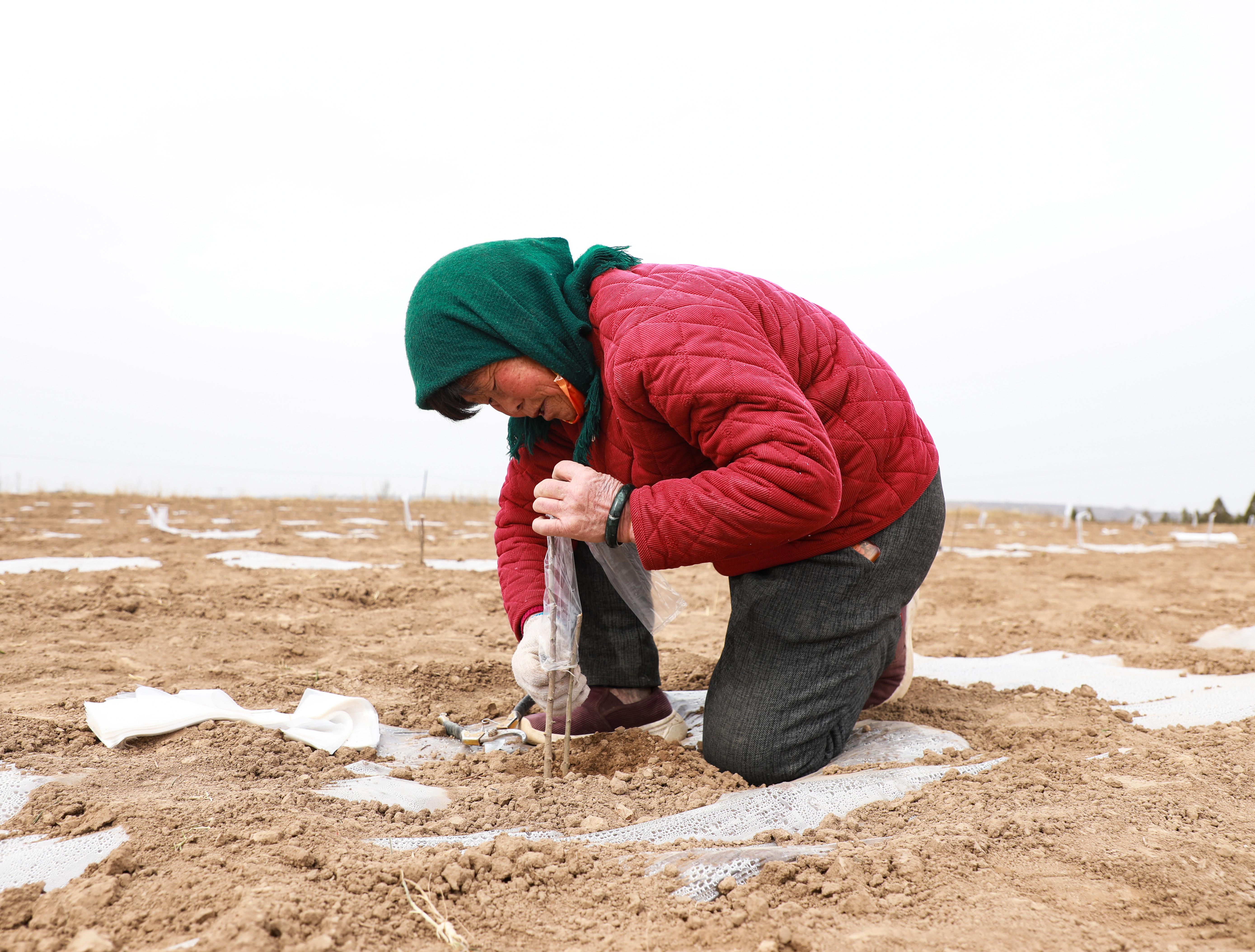 春日的環(huán)縣環(huán)城鎮(zhèn)張灘灘村,田間地頭一派繁忙。挖坑栽苗、澆水灌溉、套袋保溫、覆膜保墑……村民們?nèi)宄扇?,穿梭在剛剛翻新的土地上。在這片充滿(mǎn)生機(jī)的田野上,環(huán)縣滿(mǎn)樹(shù)紅蘋(píng)果種植專(zhuān)業(yè)合作社千畝蘋(píng)果示范園正加速成型,一株株果苗落地生根,標(biāo)志著環(huán)城鎮(zhèn)特色農(nóng)業(yè)正從傳統(tǒng)種植邁向現(xiàn)代化、智慧化的新階段。