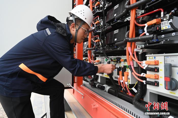 圖為工作人員在維護(hù)儲(chǔ)能電站單元柜。 戴文昌 攝