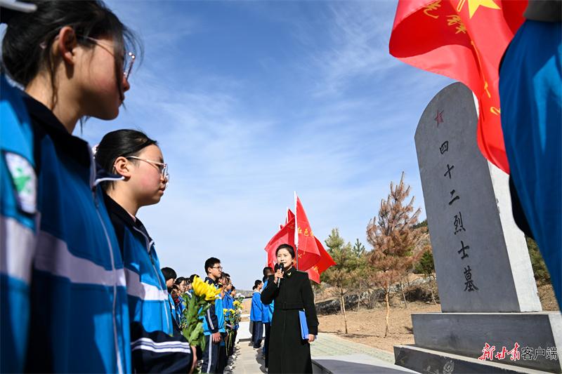 華池縣中學(xué)生們聆聽(tīng)閆洼子四十二烈士的故事。圖片由華池融媒提供