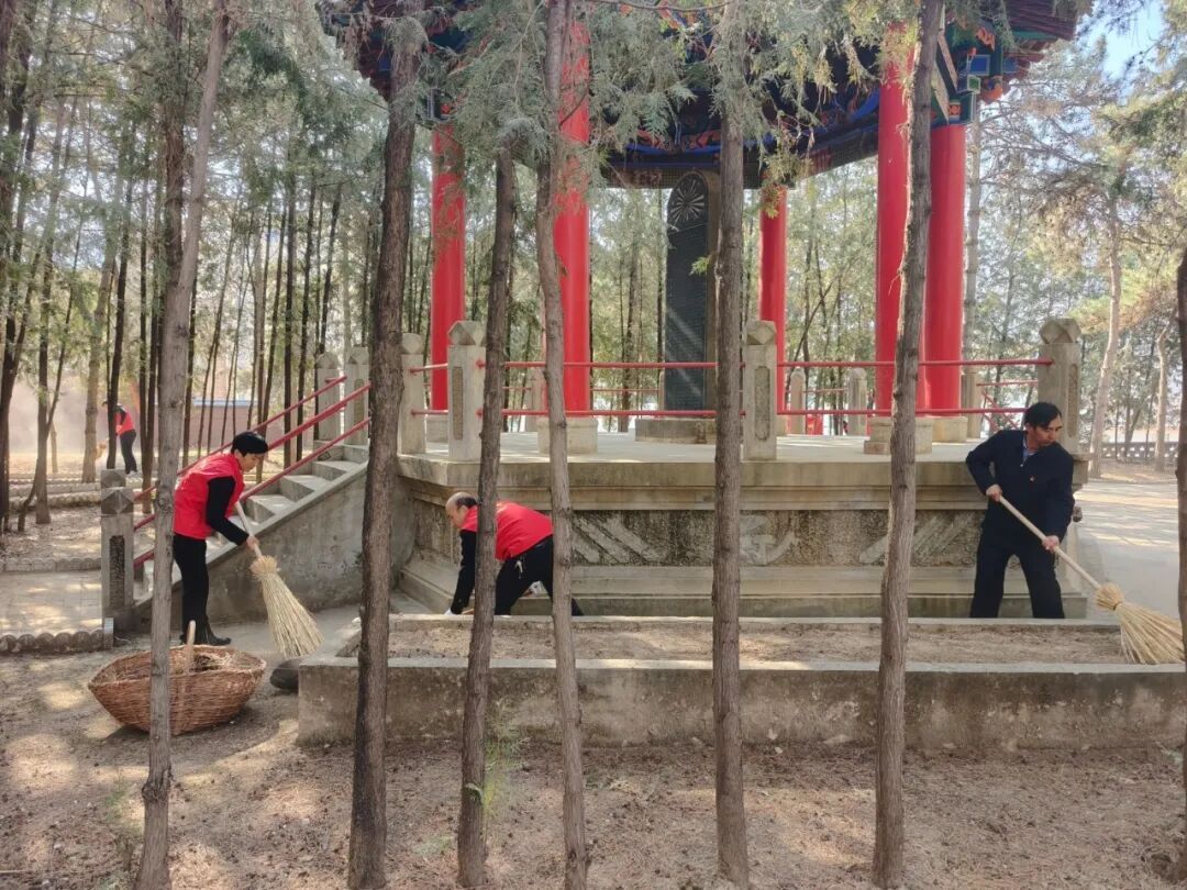 活動現(xiàn)場,黨員和志愿者們分工明確、干勁十足。有的手持掃帚清掃園區(qū)道路上的落葉和雜物;有的用抹布仔細(xì)擦拭烈士墓碑;還有的精心修剪陵園樹木凌亂生長的雜枝,大家不怕辛苦,躬身勞作,認(rèn)真完成每一項(xiàng)清潔任務(wù)。