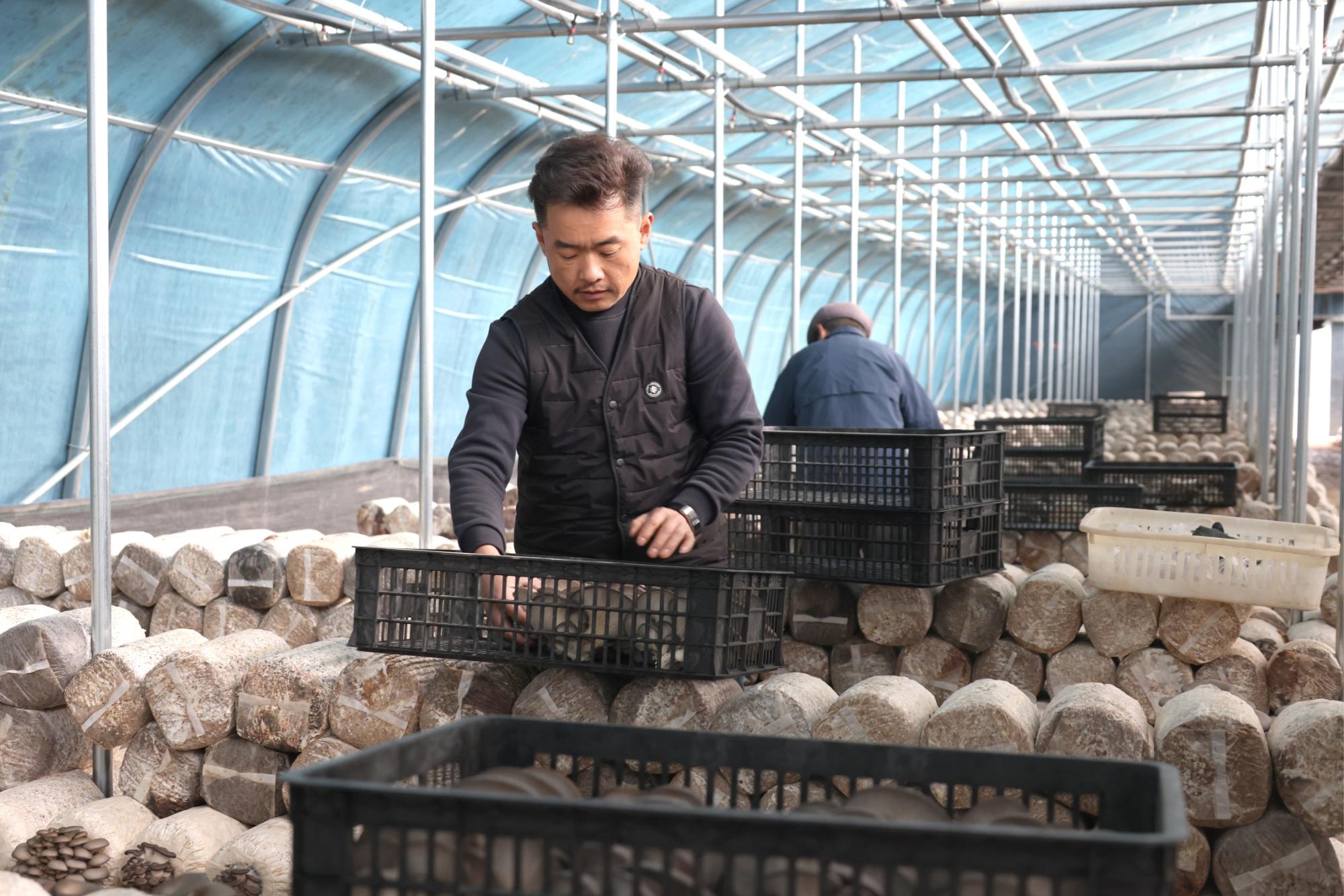西峰區(qū)彭原鎮(zhèn)鄢旗坳村種植戶采摘平菇(西峰區(qū)融媒體中心供圖)