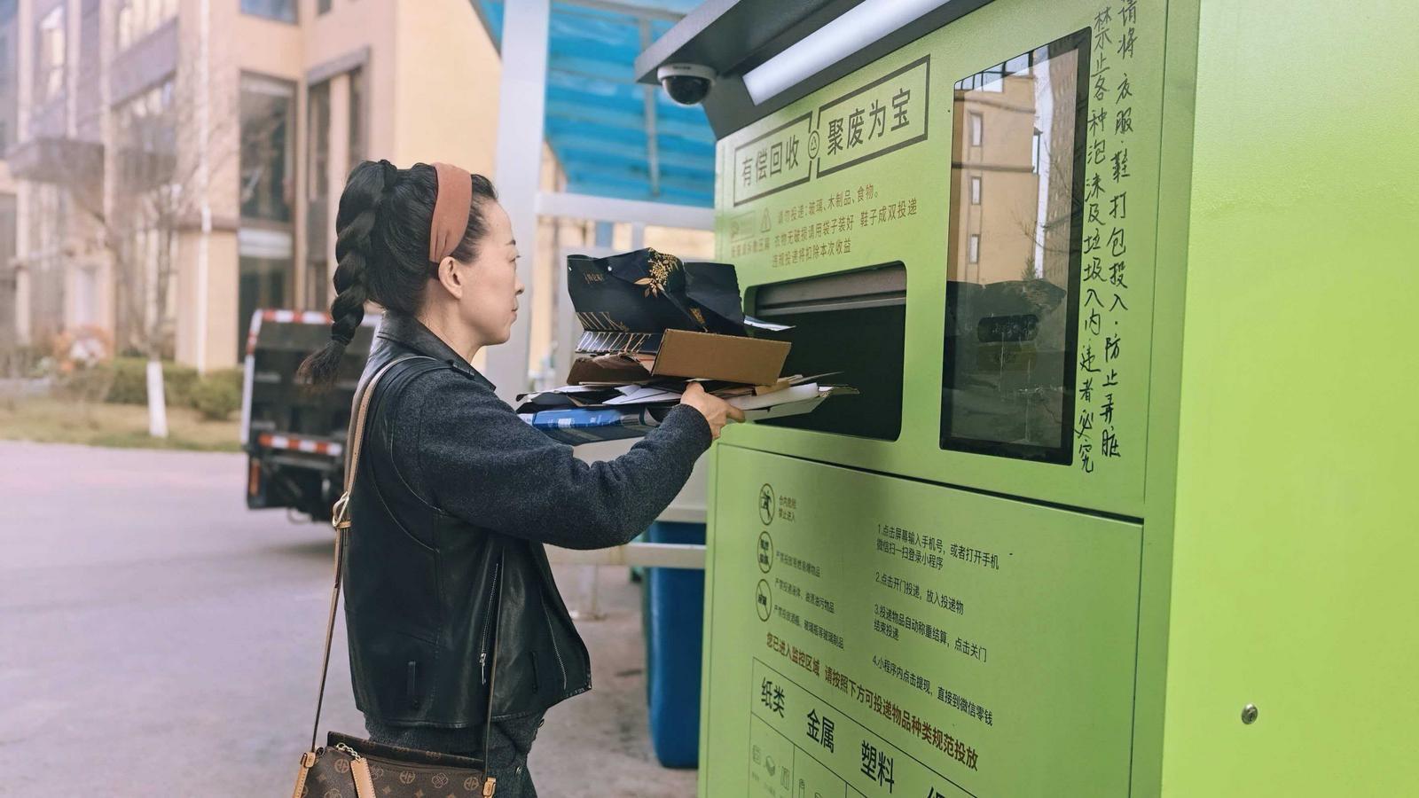 慶陽凈界再生資源回收有限公司法人焦文強介紹:“目前我們已在西峰區(qū)50個小區(qū)投放了75臺柜子,計劃累計投放1000臺,目前用戶達(dá)到了1萬人,在周末會產(chǎn)生5噸的回收量,周內(nèi)平均每天2噸。”