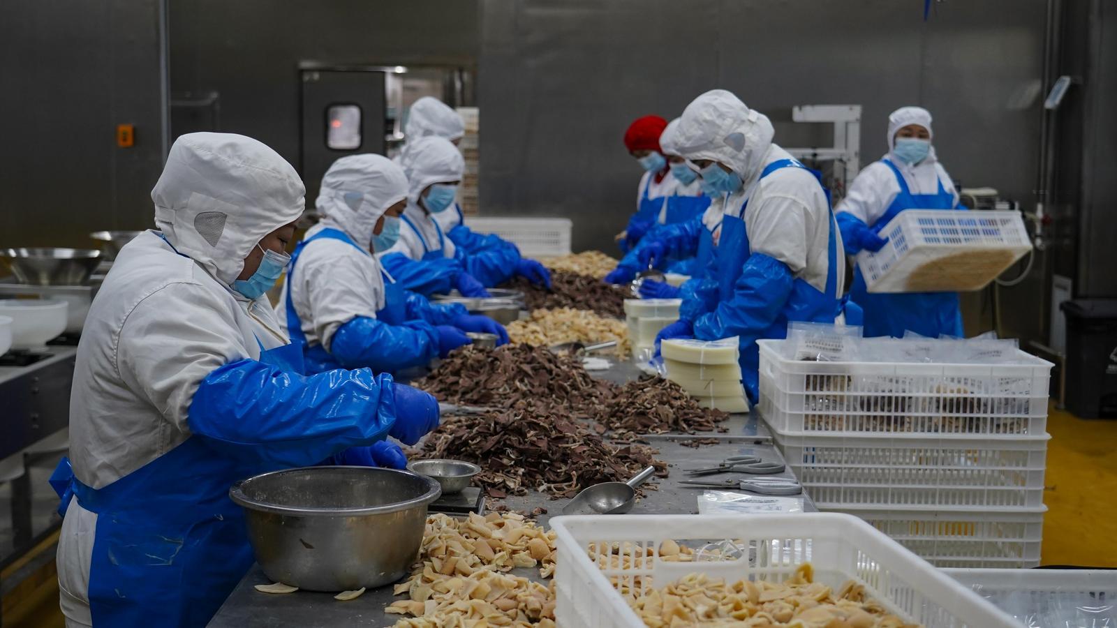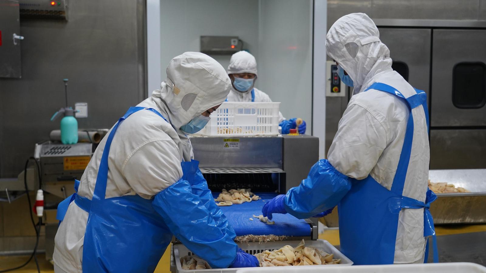 熟制車(chē)間內(nèi),10余名工人身著統(tǒng)一工裝,在各個(gè)工位上有序忙碌著。從解凍、蒸煮、預(yù)冷、切割到內(nèi)包……經(jīng)過(guò)約10個(gè)小時(shí)的精心加工,一箱箱羊雜產(chǎn)品便生產(chǎn)完成,即將發(fā)往全國(guó)各地。