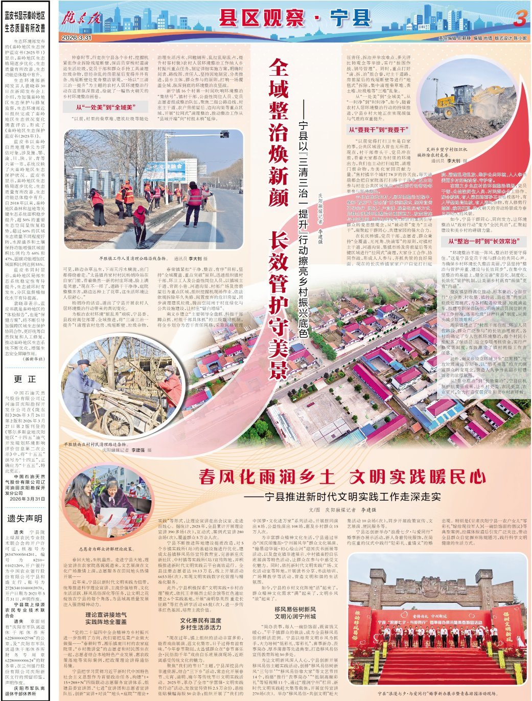 從“集中整治”到“長(zhǎng)效常治”,寧縣以機(jī)制護(hù)航美麗成果,讓鄉(xiāng)村更美、農(nóng)民更富、農(nóng)業(yè)更興,全力打造宜居宜業(yè)和美鄉(xiāng)村新樣板。