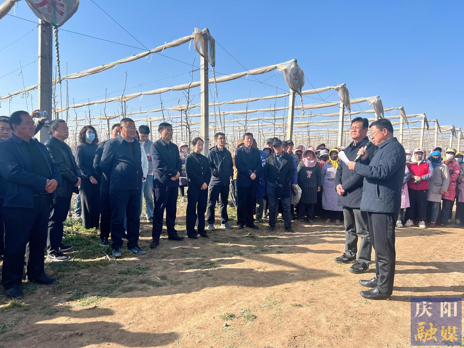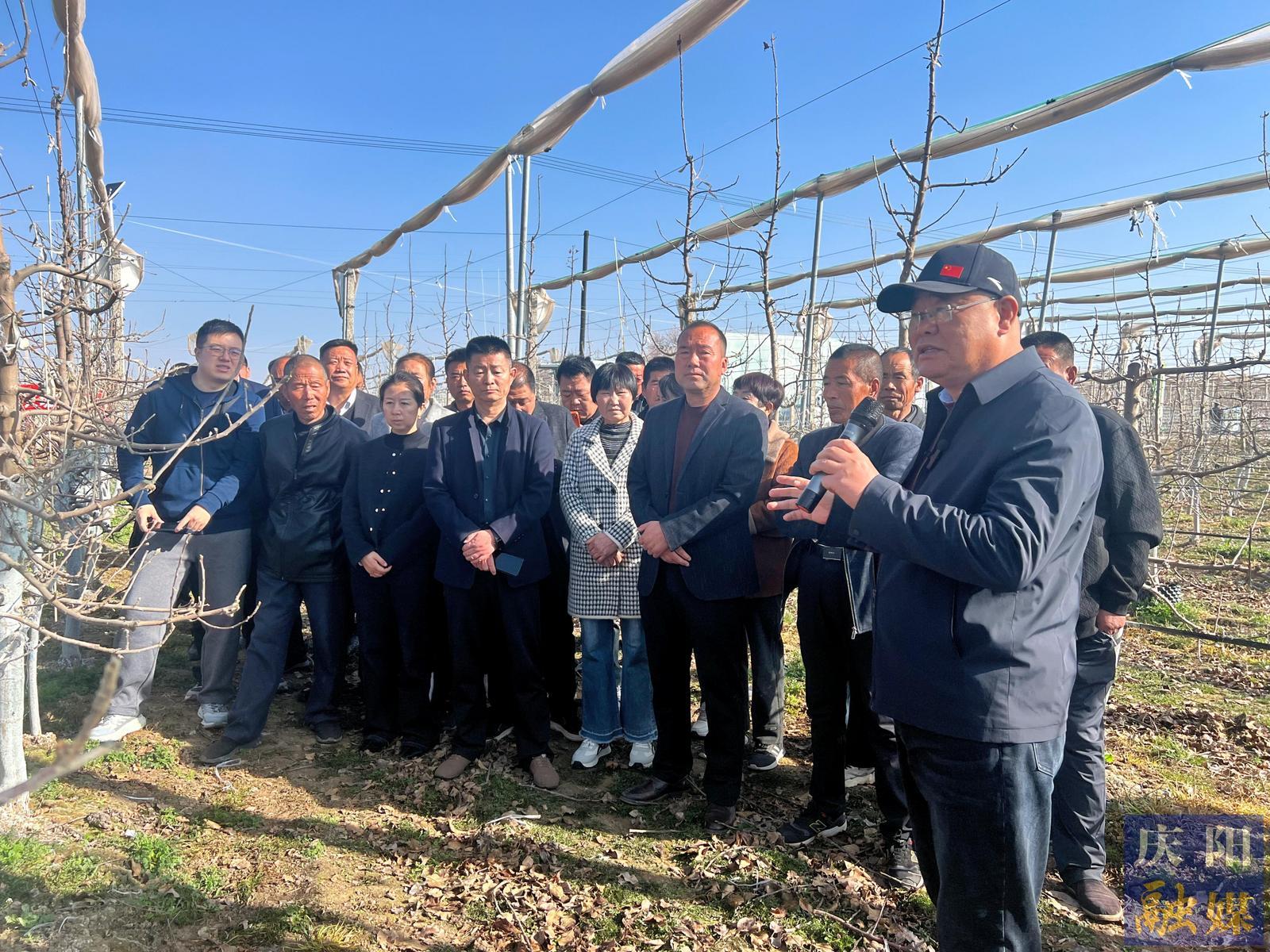 活動以“瑞果精管提質效,科學防災促豐產(chǎn)”為主題,搶抓春季果園管理關鍵期,聚焦花期管理與霜凍防御兩大核心,為慶陽蘋果優(yōu)質豐產(chǎn)筑牢基礎。在實踐教學環(huán)節(jié),國家現(xiàn)代蘋果產(chǎn)業(yè)技術體系崗位專家、西北農(nóng)林科技大學教授、慶陽現(xiàn)代蘋果產(chǎn)業(yè)技術體系首席科學家趙政陽現(xiàn)場指導,圍繞蘋果花前復剪、花期精細化管理開展技術講解,并針對瑞雪蘋果褐變問題,系統(tǒng)傳授預防措施與管理要點,為果農(nóng)答疑解惑、傳授“真經(jīng)”。