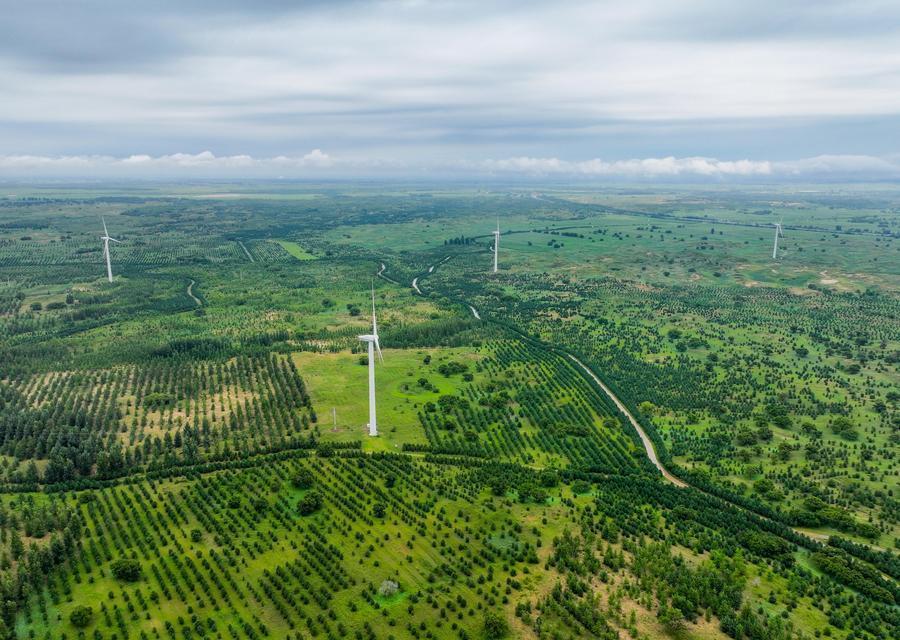 △2024年8月3日,在內(nèi)蒙古通遼科爾沁左翼后旗,科爾沁沙地“雙百萬畝”綜合治理工程努古斯臺項目區(qū)內(nèi)綠意盎然。