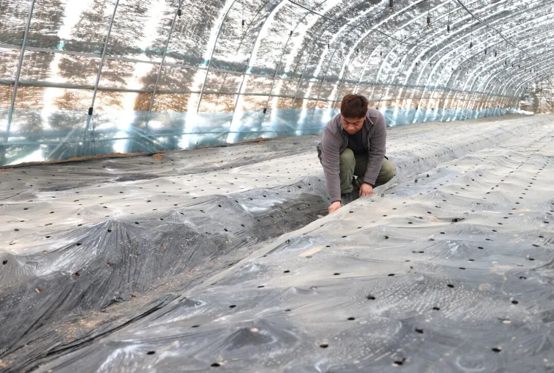 來自東北的種植戶范家福,有著十余年食用菌種植經(jīng)驗(yàn),今年首次在西峰區(qū)嘗試“兩膜一氈”種植模式,在原有大棚基礎(chǔ)上增設(shè)草簾,實(shí)現(xiàn)冬季保溫、夏季遮陰,為羊肚菌生長(zhǎng)營(yíng)造適宜環(huán)境。