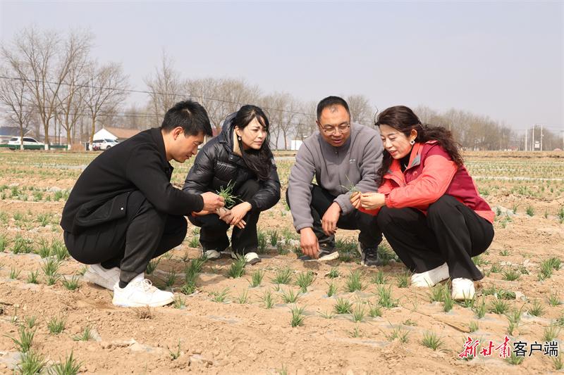 西峰區(qū)農(nóng)技人員與種植戶(hù)查看苗情墑情。新甘肅·甘肅日?qǐng)?bào)通訊員 盤(pán)小美攝