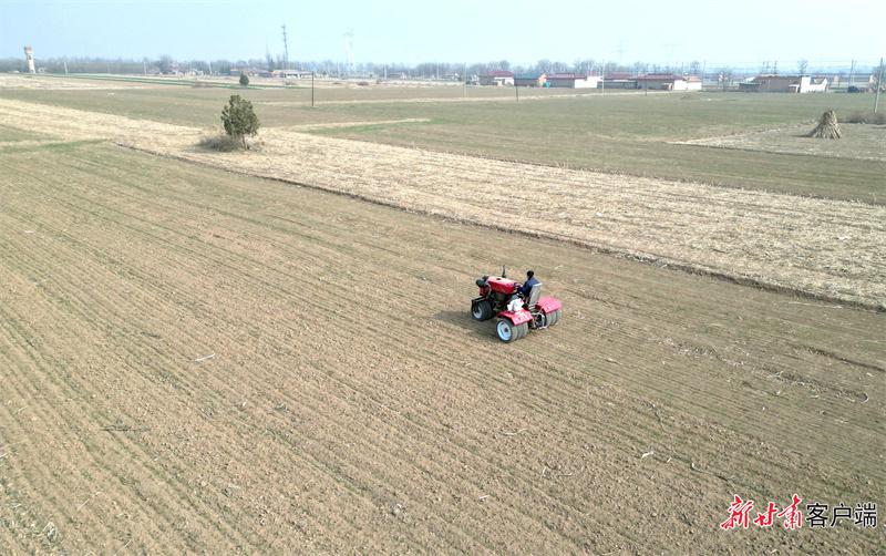 西峰區(qū)肖金鎮(zhèn)雙桐村晚播小麥鎮(zhèn)壓作業(yè)。新甘肅·甘肅日?qǐng)?bào)通訊員 盤(pán)小美攝