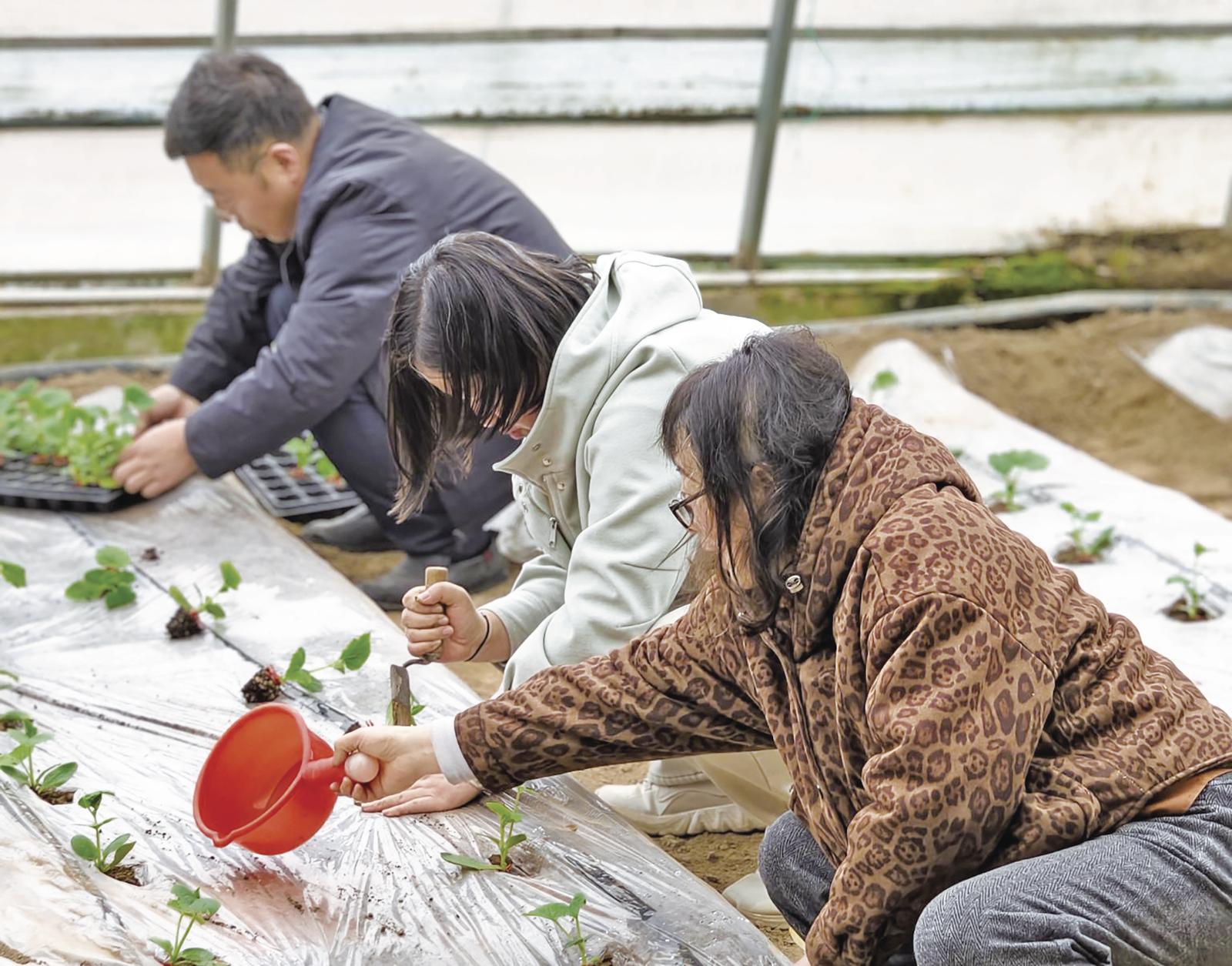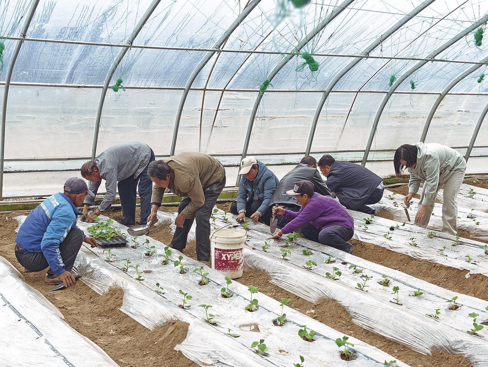 村民給新栽植的黃瓜苗澆水。 通訊員 郭晉健 攝