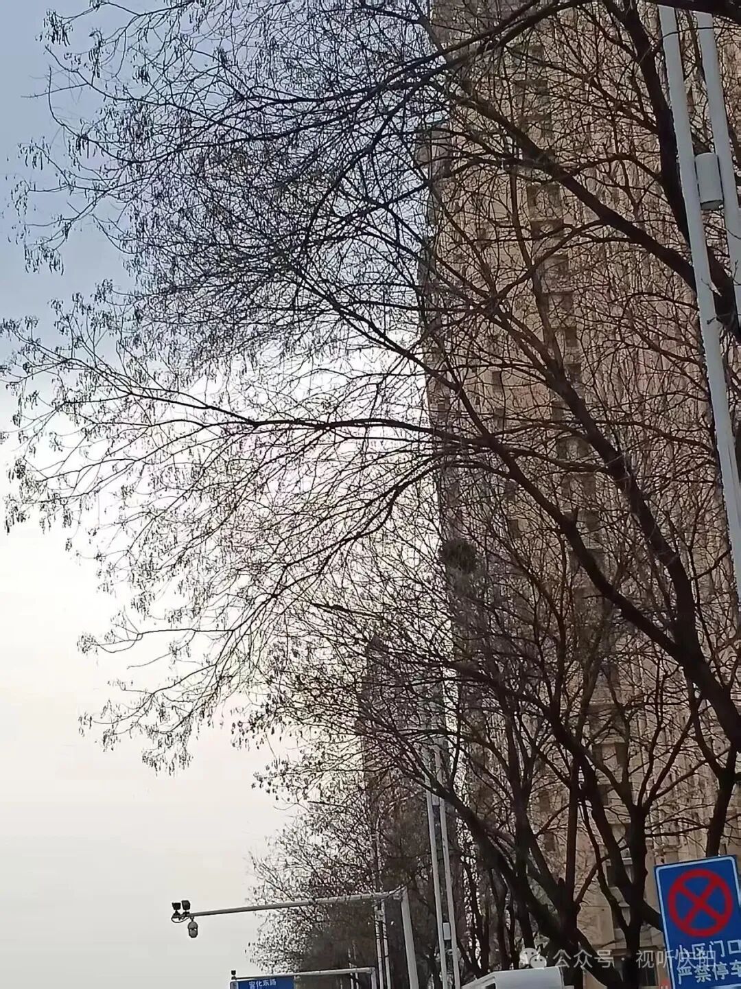 馬路南邊行道樹上,一團樹枝被揉成一個疙瘩,一聲不響地安放在樹杈間,好像初次進城的小姑娘,膽怯又驚喜,顫顫地站在枝頭,伸長脖子張望,想四處走走,又不敢走得太遠,生怕迷了路,父母埋怨。