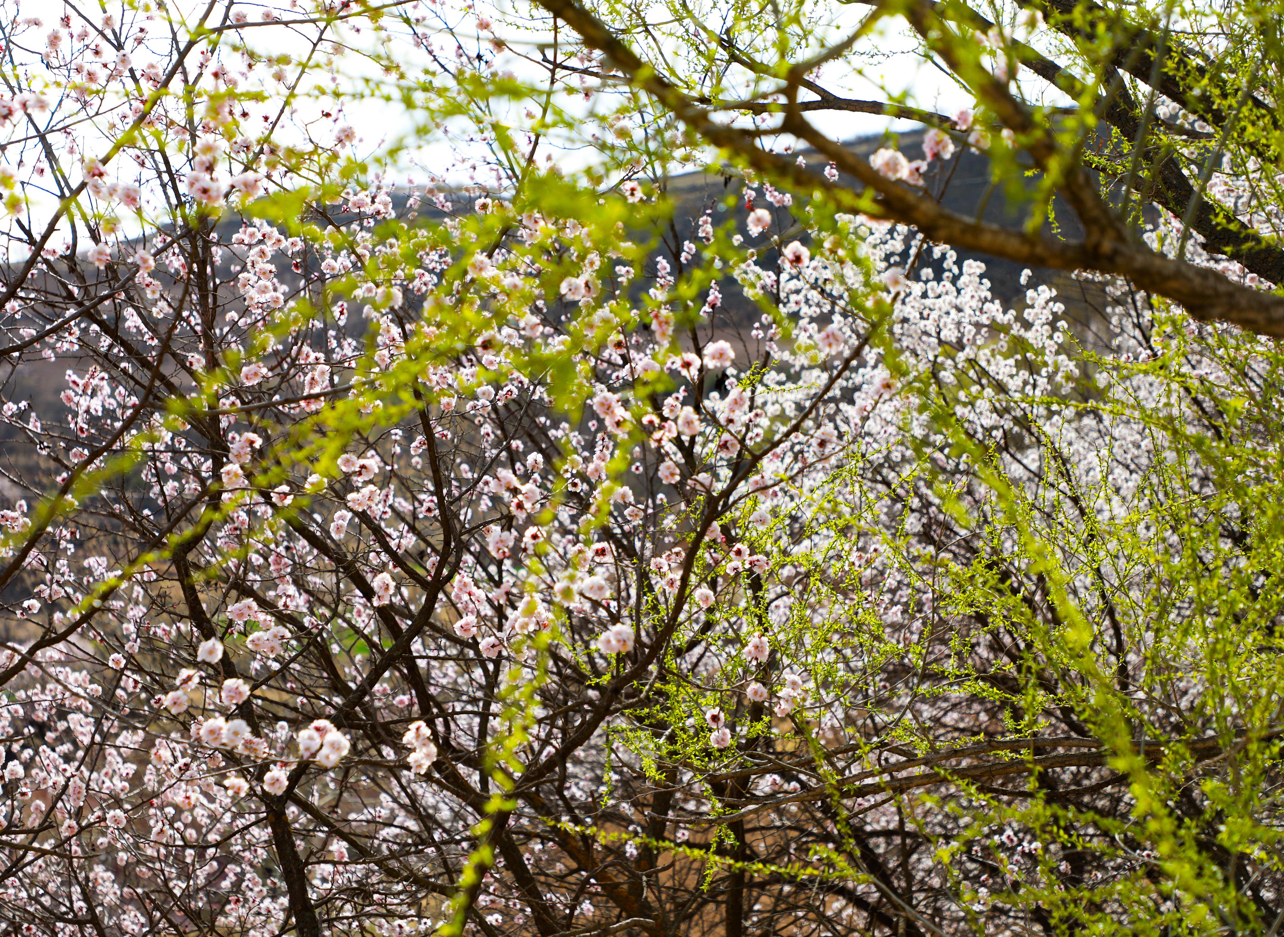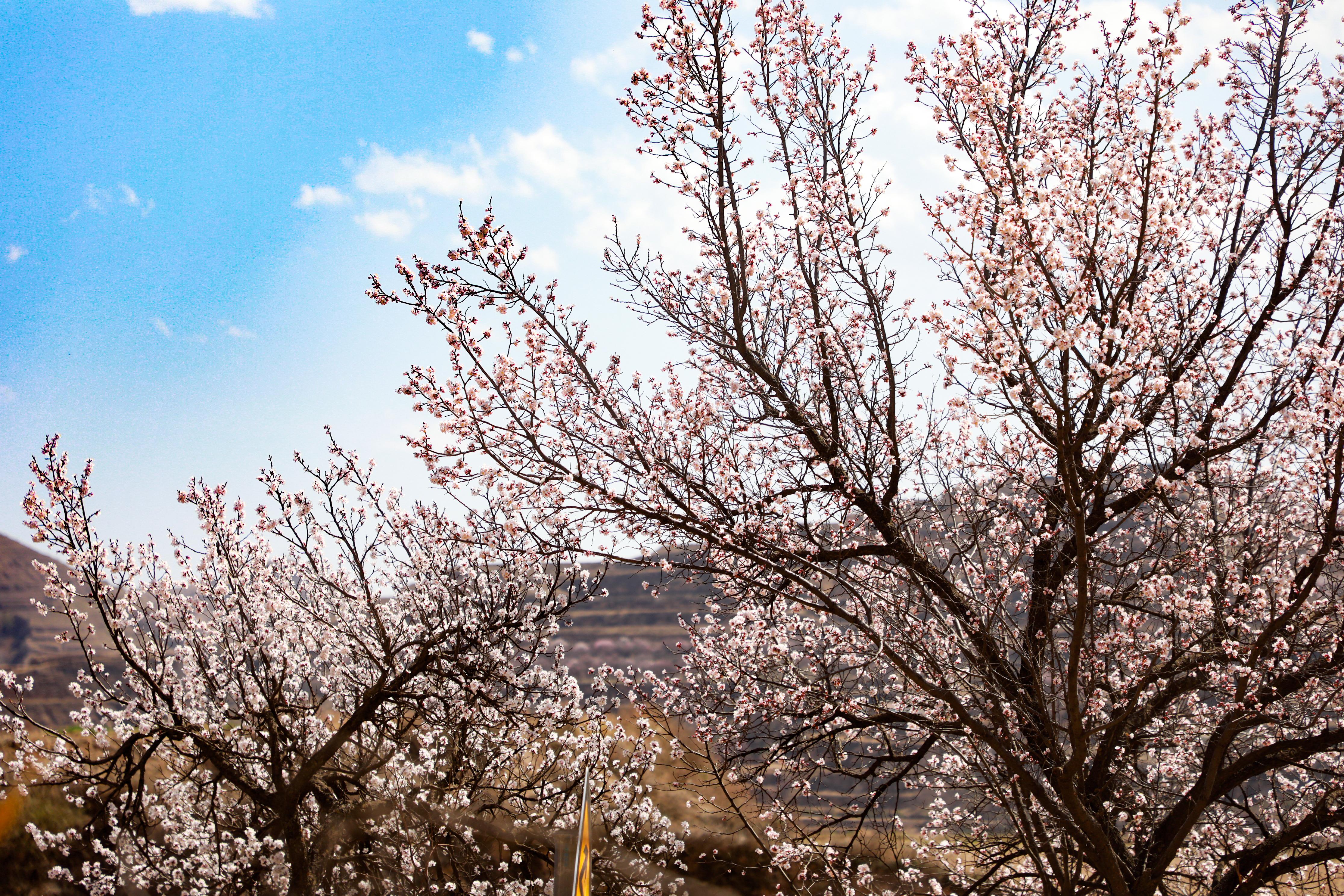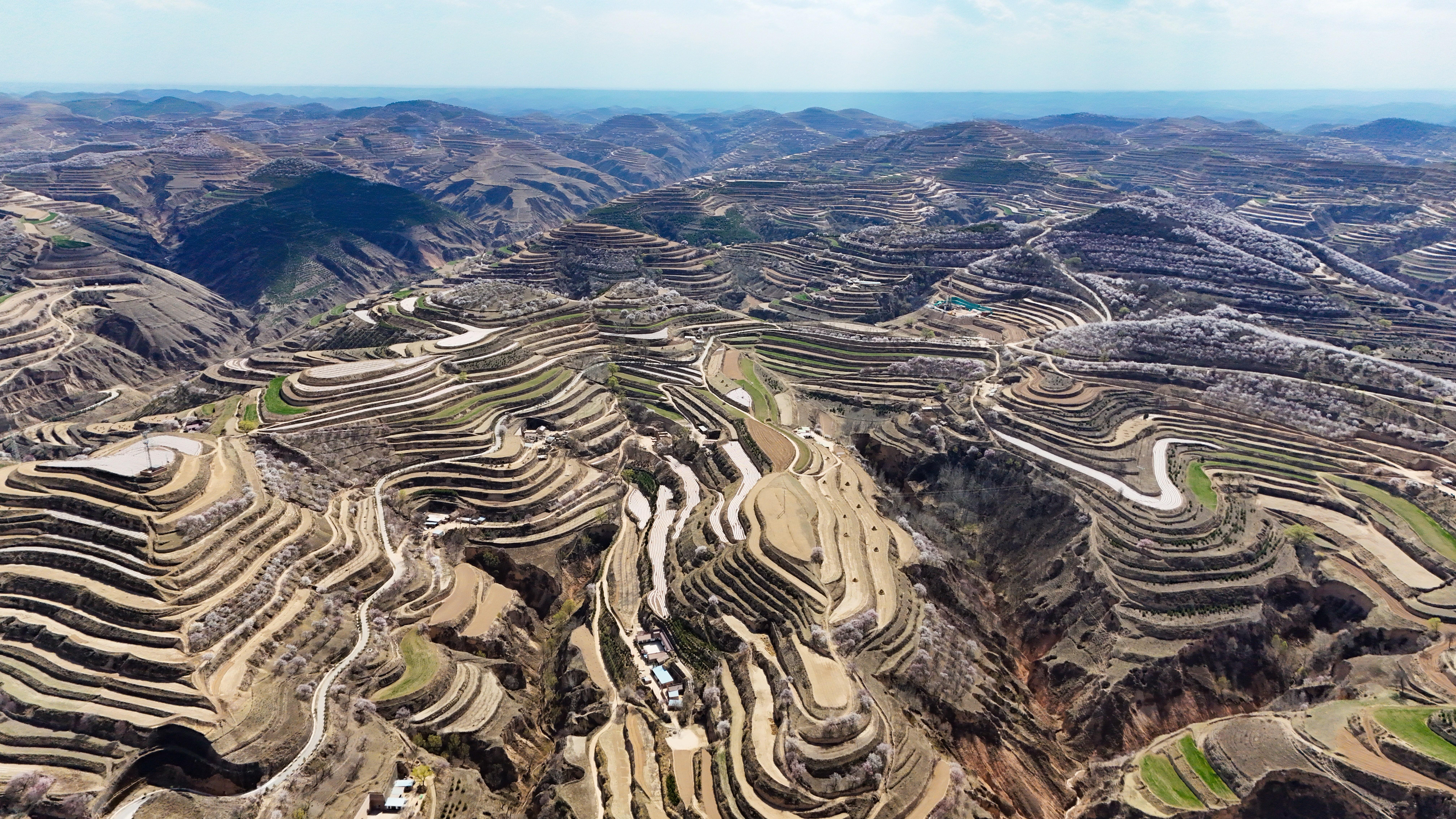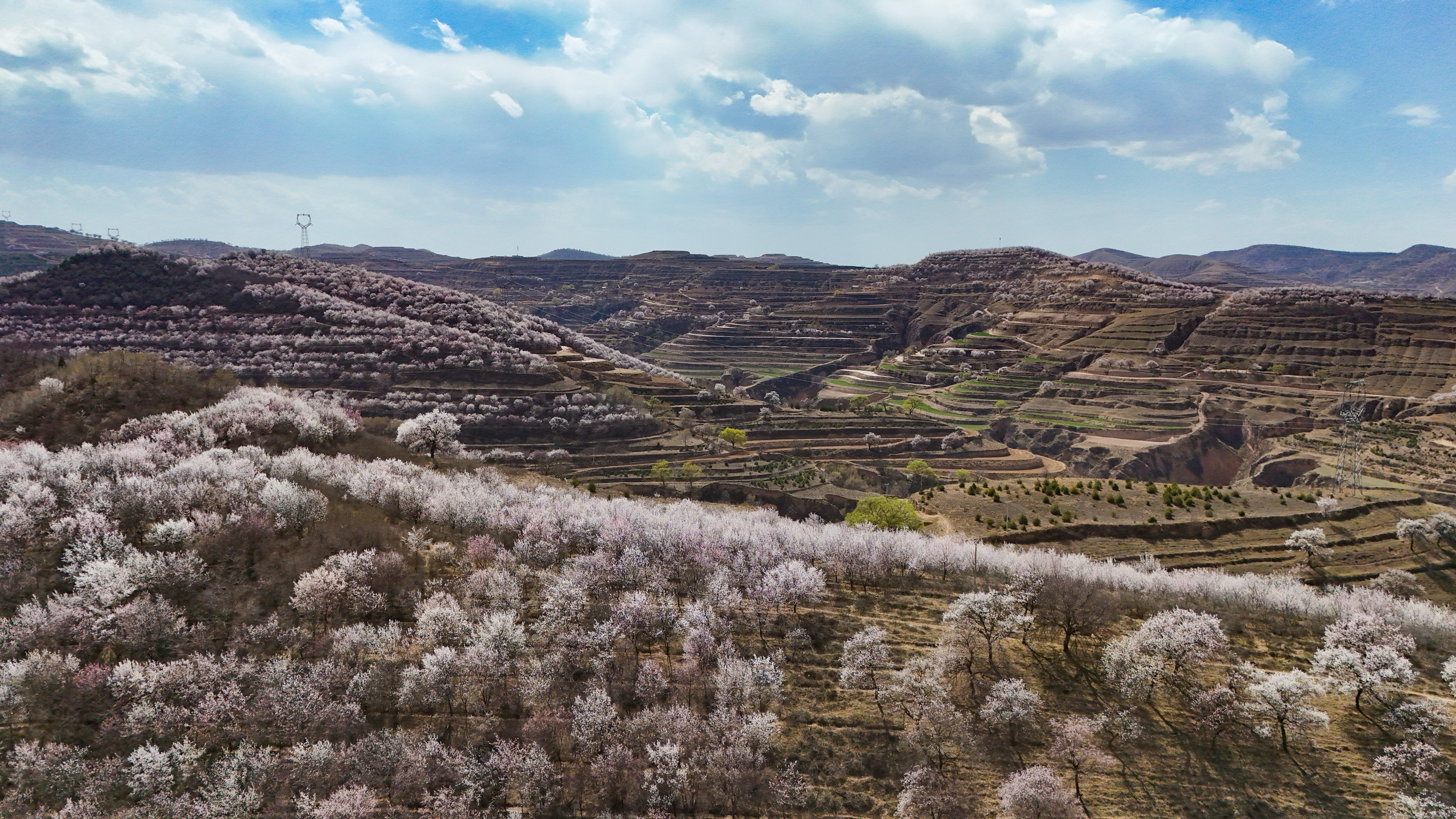 記者來到環(huán)縣天池鄉(xiāng),驅車沿山間公路緩緩前行數(shù)十公里,目光所及之處,溝壑梁峁間粉白連片盛放。平日里蒼茫厚重的黃土高原,滿是春日生機,漫步其間,仿若置身一幅靈動絕美的水墨丹青畫卷。