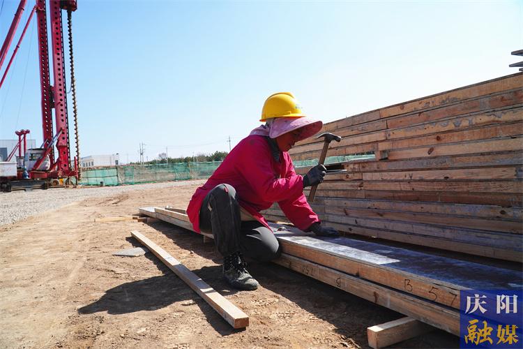 走進項目建設現(xiàn)場,2幢工業(yè)樓宇已拔地而起。工人們分散在各區(qū)域,或綁扎鋼筋,或安裝鋼結(jié)構(gòu)構(gòu)件,或拆除模板,各司其職。來自四川省巴中市的李會英在慶陽建筑工地務工已逾十年。自3月25日起,她便與20多位工友一同參與該項目建設。“這兩天主要在制作木質(zhì)模板,月收入能有7000元左右?!崩顣⑦吤β颠吔榻B。