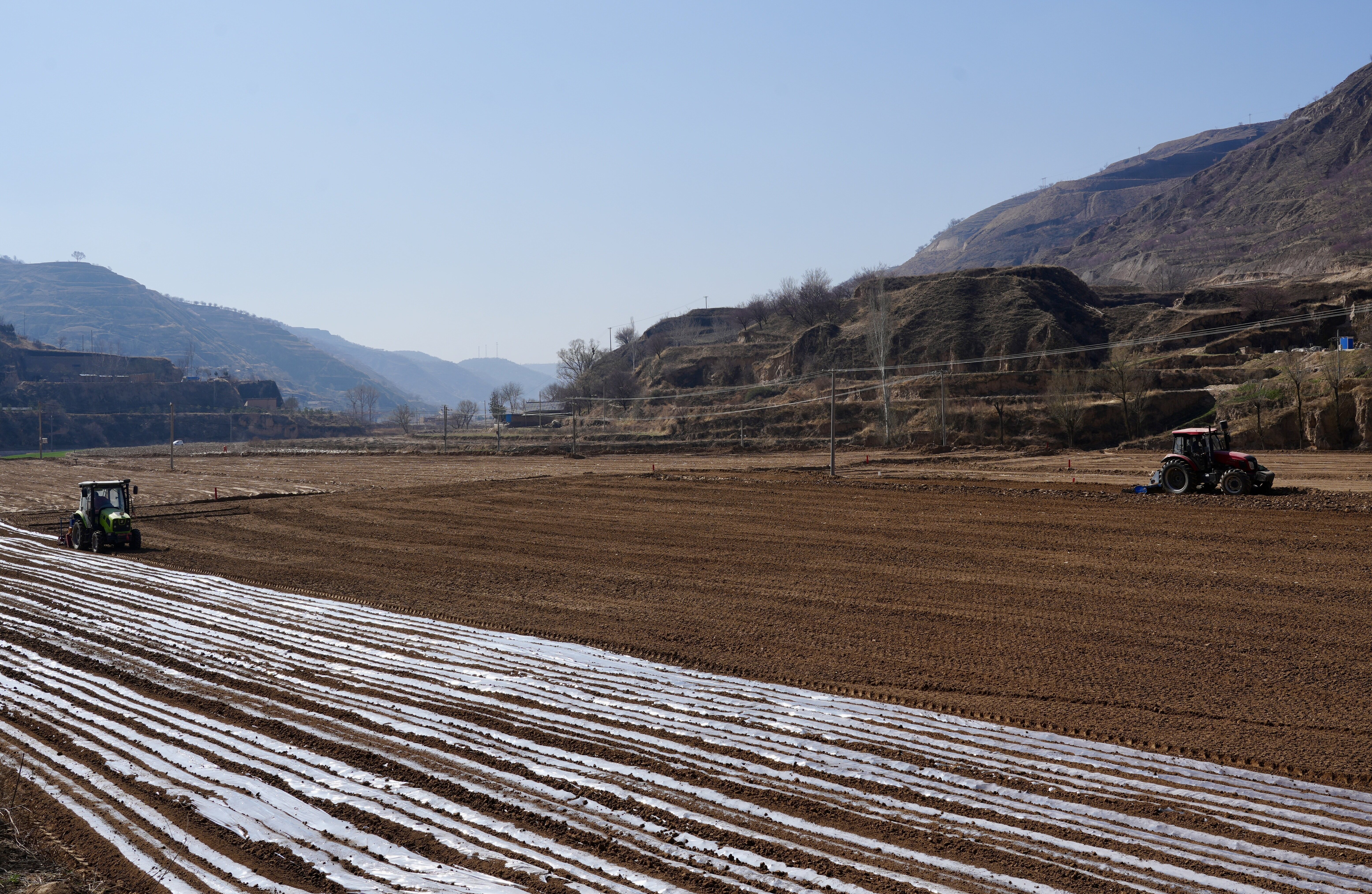緊鄰小拱棚建設(shè)現(xiàn)場(chǎng)的慕家河村高標(biāo)準(zhǔn)農(nóng)田里,滴灌帶順著田壟整齊排布、成行延伸,兩臺(tái)覆膜機(jī)勻速穿梭在平整的田塊間,銀白色地膜沿地塊順勢(shì)鋪開(kāi),村民慕永慧緊跟在機(jī)械后方,彎腰對(duì)地膜邊緣逐一夯土、壓實(shí)。