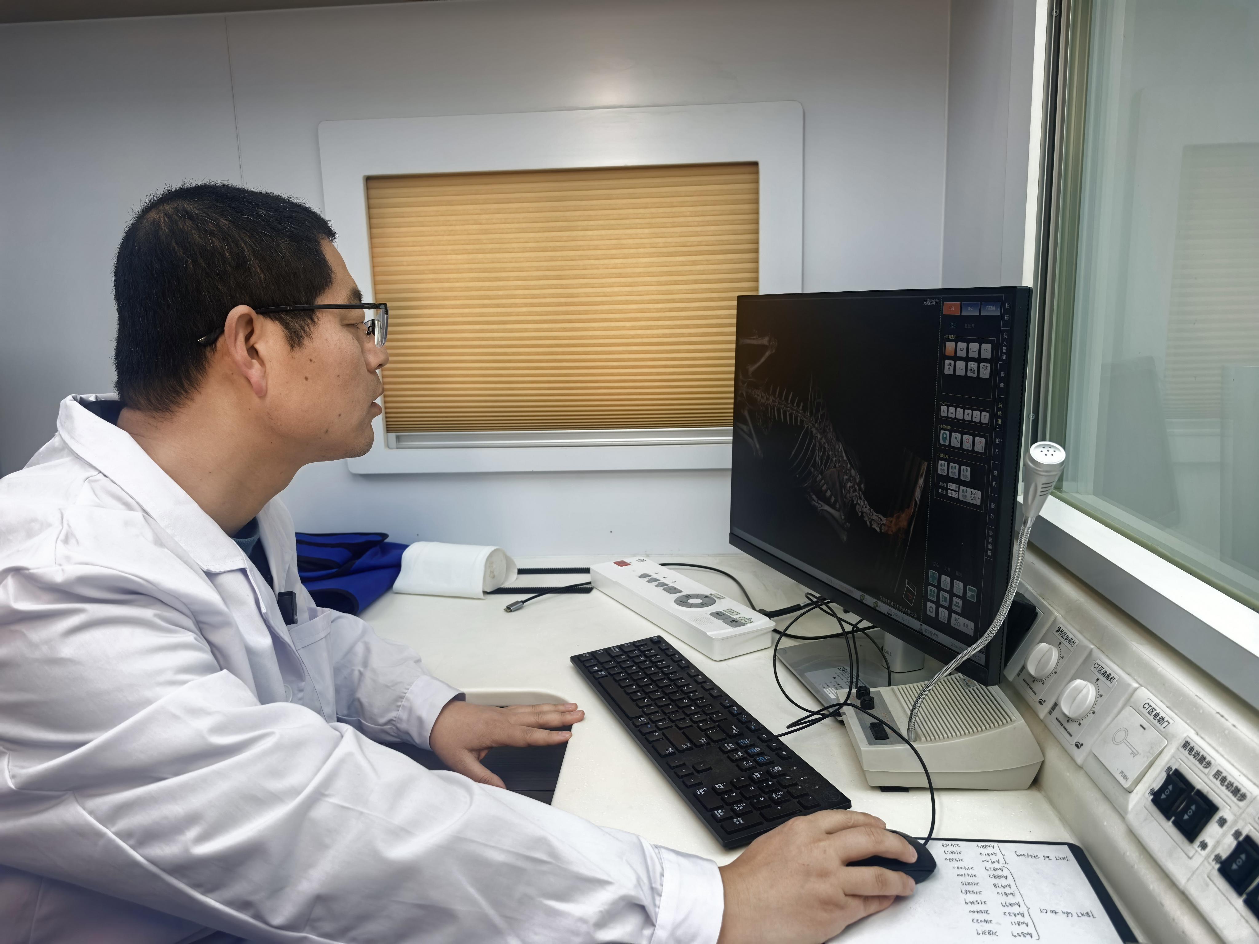 市農(nóng)科院正高級畜牧師徐振飛查看肉羊三維影像。
