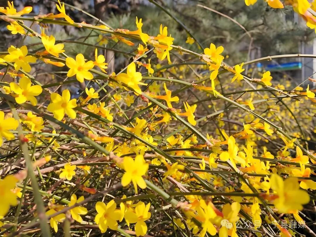 迎春花率先破寒綻放,嫩黃綴枝,如星子灑落,宣告著春日的降臨。